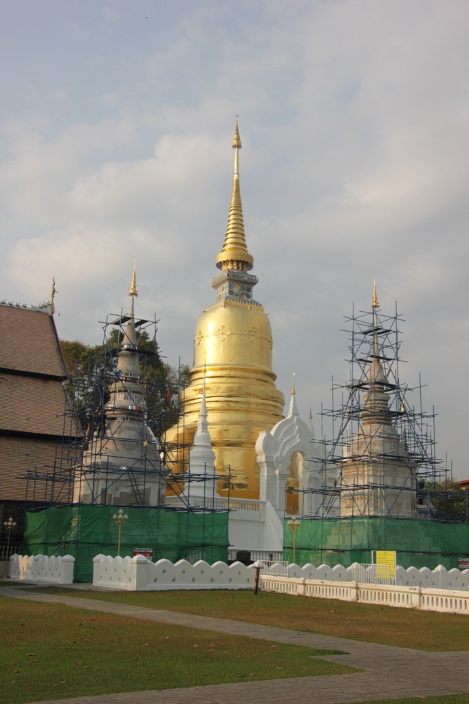 We had an early breakfast before heading out to the Wat Suandok. Wat is a term used to describe temples. However, the term also includes all the buildings supporting the temple such as the Stupa, main buildings where teaching happens, the monastery where monks live, etc. The one we visited today was founded in 1373 and included monuments honouring the ancestors of families over centuries.