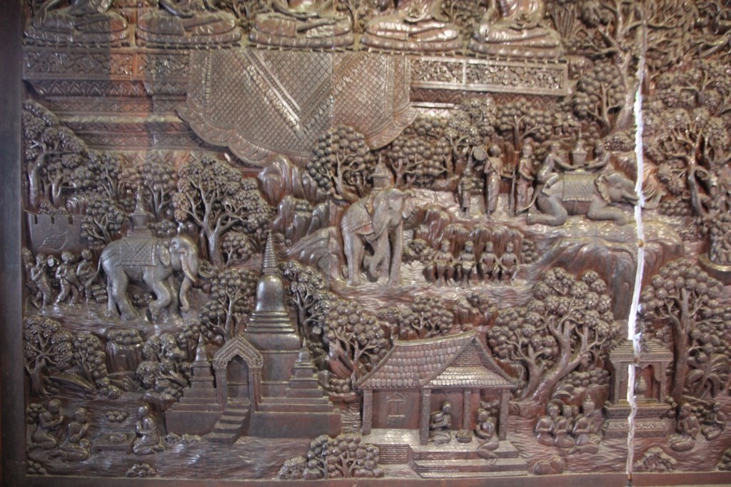 The story goes (as far as I could follow) that a man found a relic of Buddha and brought it to the king who didn’t believe it was real. Another powerful person believed that the relic was true and invited the person to house the Buddha with him. However, the Buddha relic broke in two. The powerful man decided to bury half of the relic at this temple. It is buried in the ground and a large Stupa has been built and rebuilt over it for hundreds of years. A stupa is typically built of brick/concrete overlaid with glass and plaster that is painted gold. It is maintained and added to as time goes by.