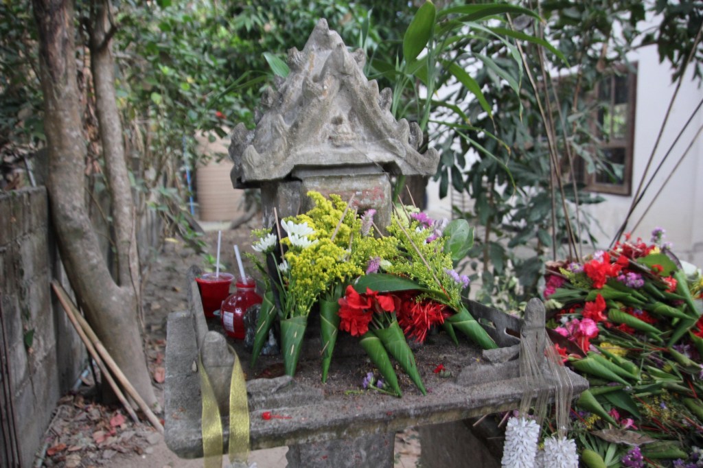 We went to a Lanna family home for dinner. Our host, Joe, welcomed us to his home and shared that he and 12 members of his family currently live on the property that has been in his family for 5 generations. The family were originally farmers growing rice. They now grow many things and focus on making sticky rice. Joe described that his family were 1) animistic (I.e., they believe in spirits), 2) Buddhist, 3) Hindu and 4) followed Feng Shui. He invited us to make bouquets to make an offering at their spirit house before coming into the building.