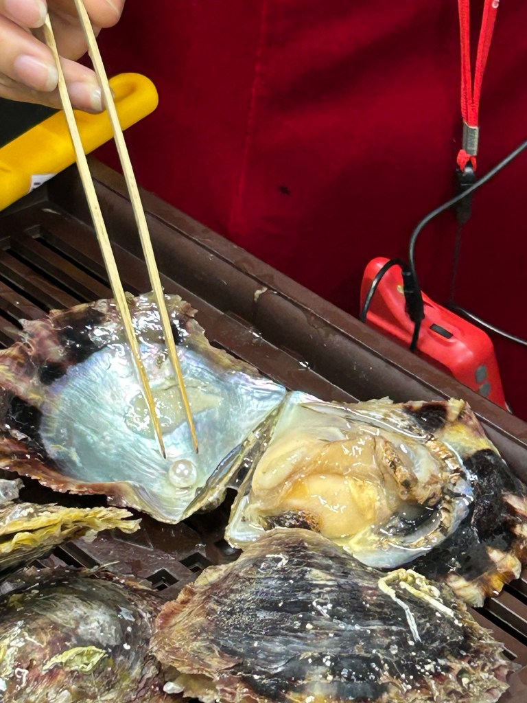 Our second stop was at an oyster farm. OK, it was a pearl sales opportunity, but they did a great job of describing how cultured pearls are made.