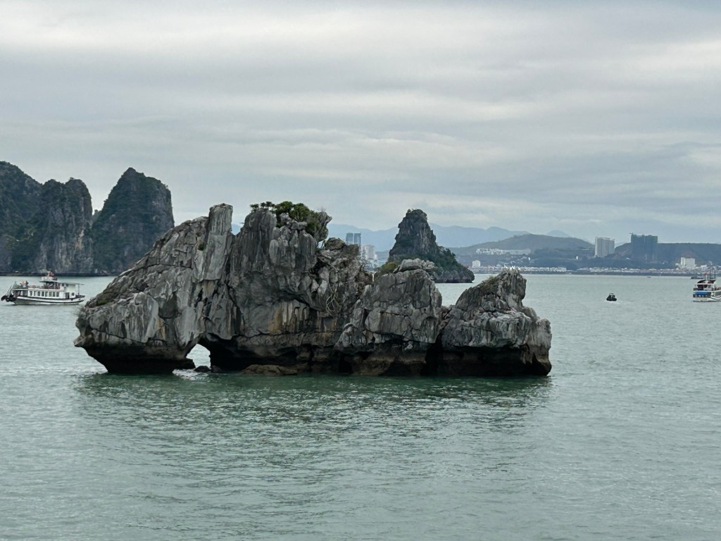 We left our hotel at 8:15 for our 2 hour drive to Ha Long Bay. We stopped for coffee along the way at a very busy highway stop. It was massive and included a snack shop, bathrooms, temple area and bonsai and grapefruit trees.