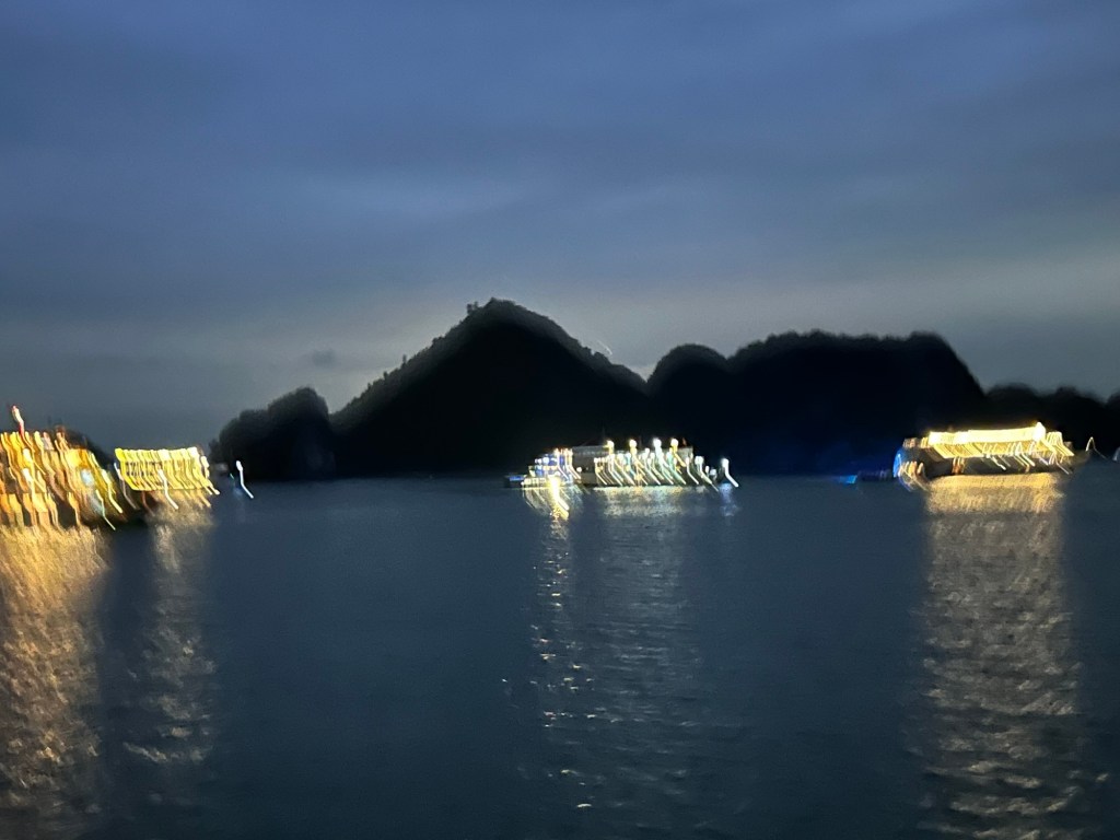 We took the tender off the boat to explore Ti Top Island where we had the option to climb 400+ steps to a look out or go swimming. I did neither as I am nursing my knee injury from November. While the climb was manageable, the 400+ uneven stairs that didn’t have a handrail seemed a bit too much. Dale was aware of how much Ha Long Bay has changed in the 10 years since his visit. The bay is much busier with both boats and people.