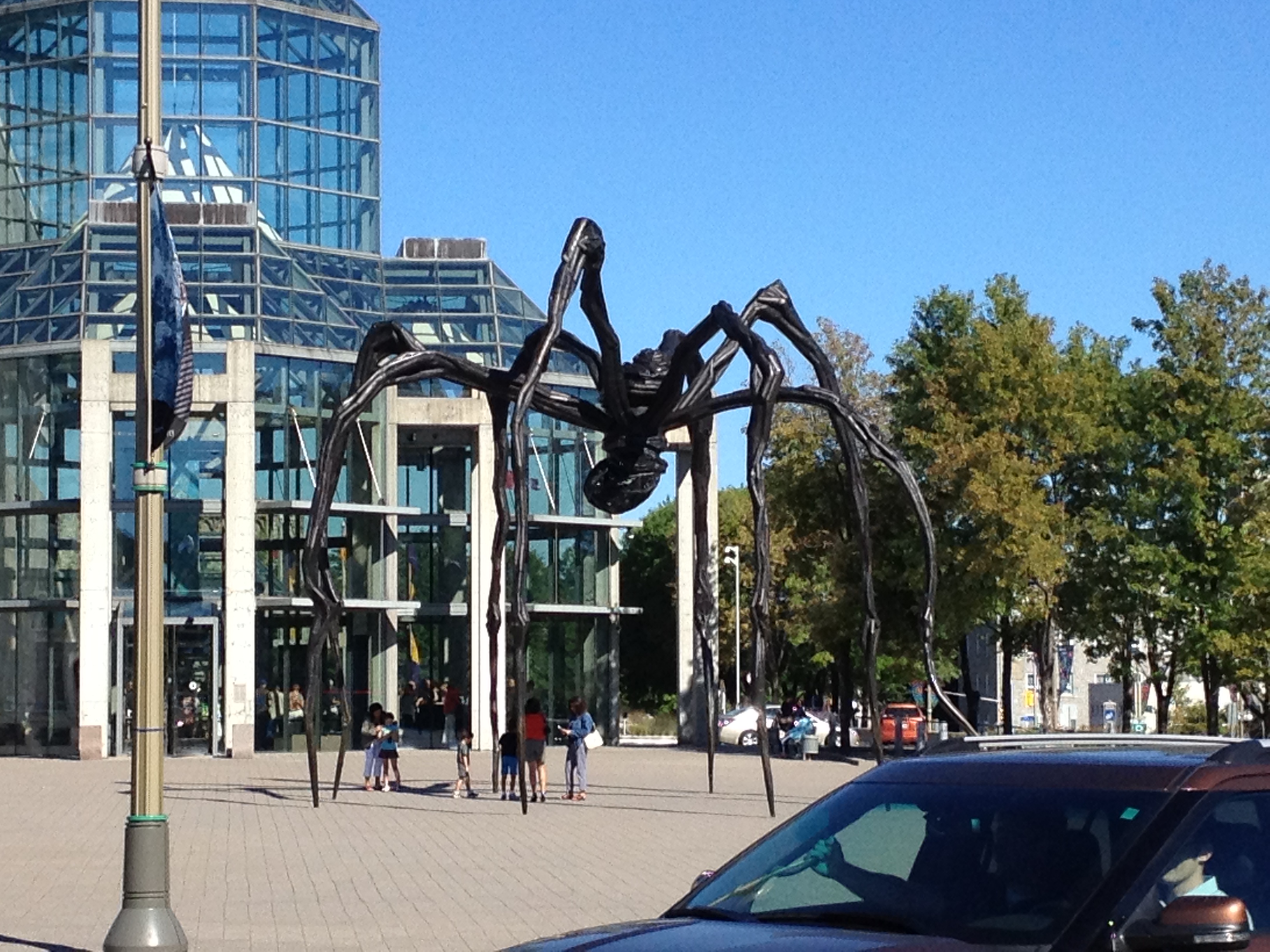 We visited the Art Gallery of Alberta on August 21, 2012 with our niece Nicole K. It was her first visit to an art gallery and it was fun exploring the AGA from her perspective. The feature exhibit was from the National Gallery of Canada collection. They had a full room of sculptures by Louise Bourgeois. The next week I was in Ottawa and had a chance to visit the NGC. As we walked up to the Gallery we were met by Bourgeois’ statue Maman, a huge statue of a pregnant spider. http://www.gallery.ca/en/see/collections/artwork.php?mkey=101000. It was fun to see work by the same artist in two different spaces.