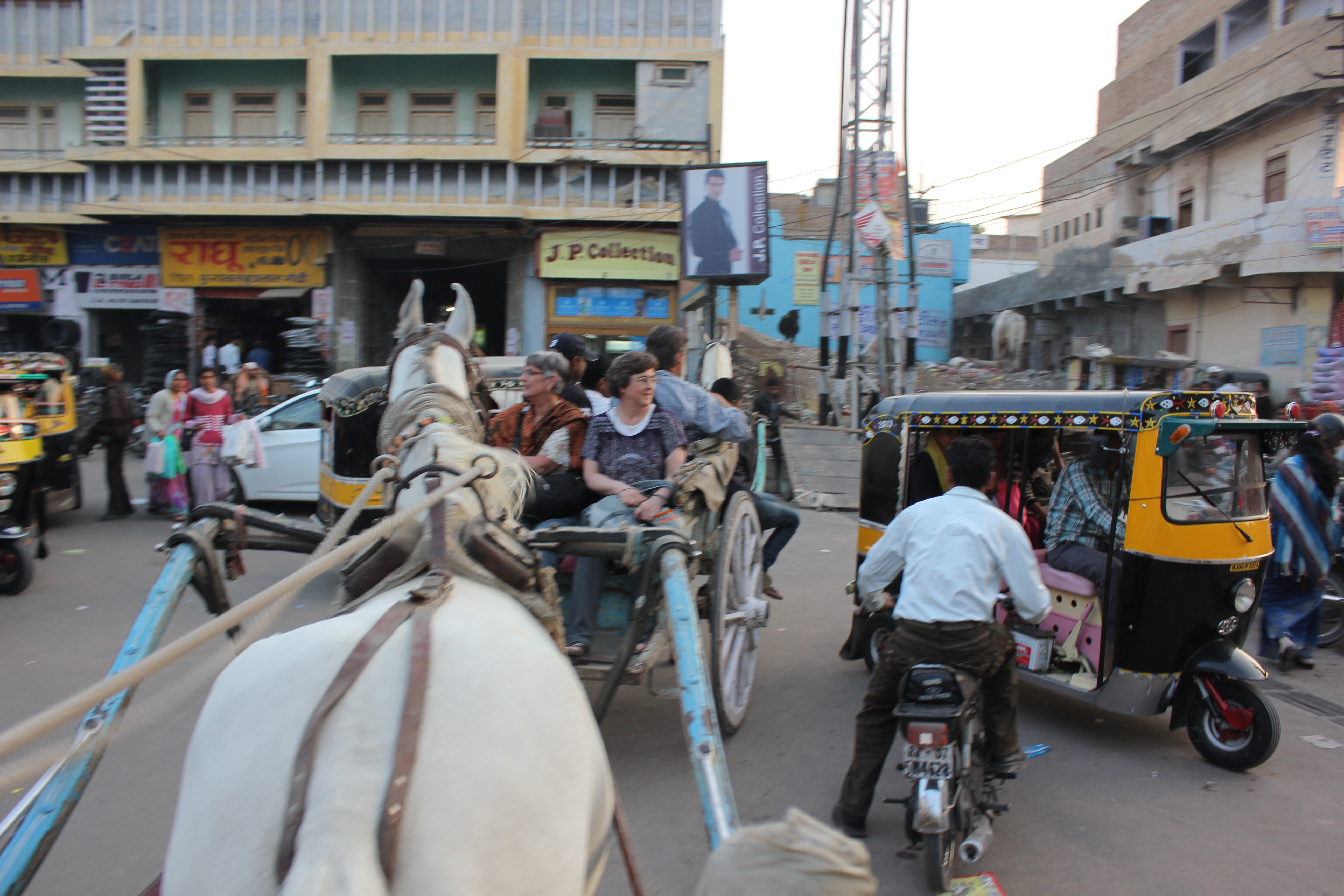 ImageImageAt times our horse simply stopped and refused to go, the driver had to dismount and go pull him along. The traffic was insane. Cars, scooters, camels, etc. all passed us with inches to spare. The only thing that made it possible to relax was that there were incredibly interesting sites to catch our eye. The old mansions in this part of town were beautiful. The markets were brilliantly colourful and the people were engaging. People would wave at us and when we waved back, we would get an amazing smile from them. Karen was particularly good at the wave!
