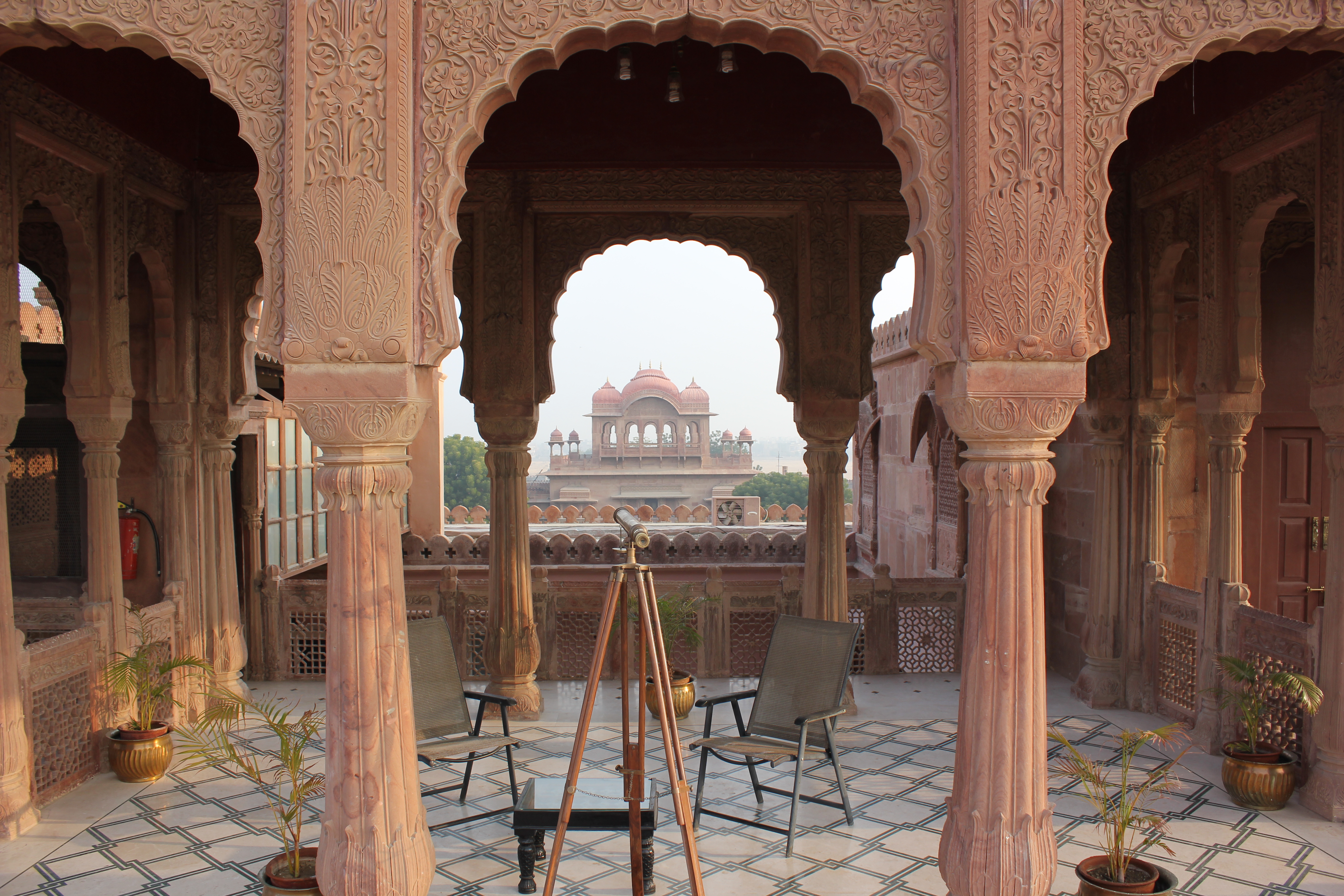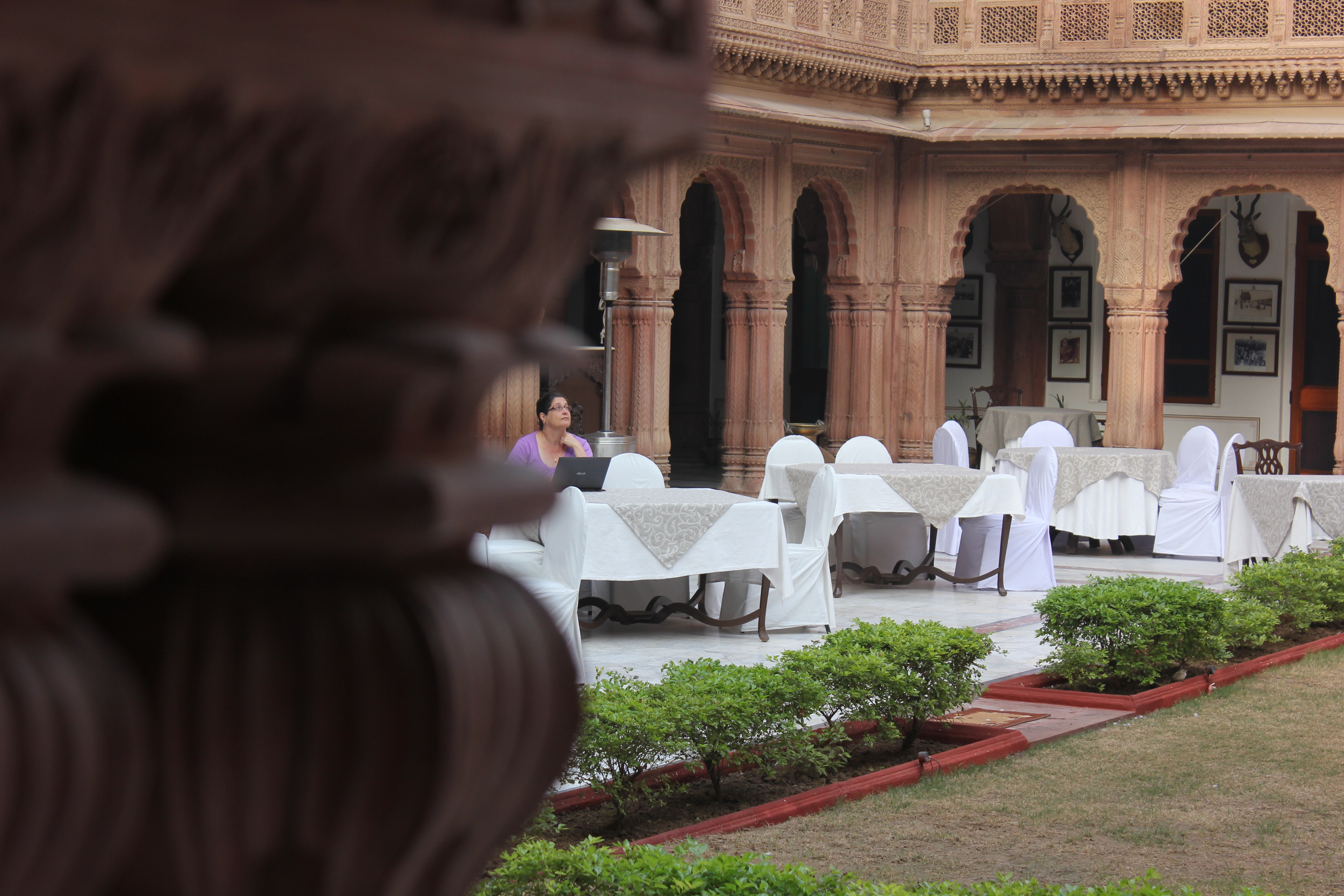 The palace that we encountered next was our place for the night! OMG it was magnificent. We had rooftop rooms. The elevator was 100 years old and had a seat to make sure you were comfortable to go up one floor! The attendant worked the doors! We then had to walk up three flights to the roof. We felt bad for the baggage wallas (Walla = person who does something) who had to carry up our stuff! The luxury of this palace was stunning. We ate supper outside in the courtyard and slept like royalty.