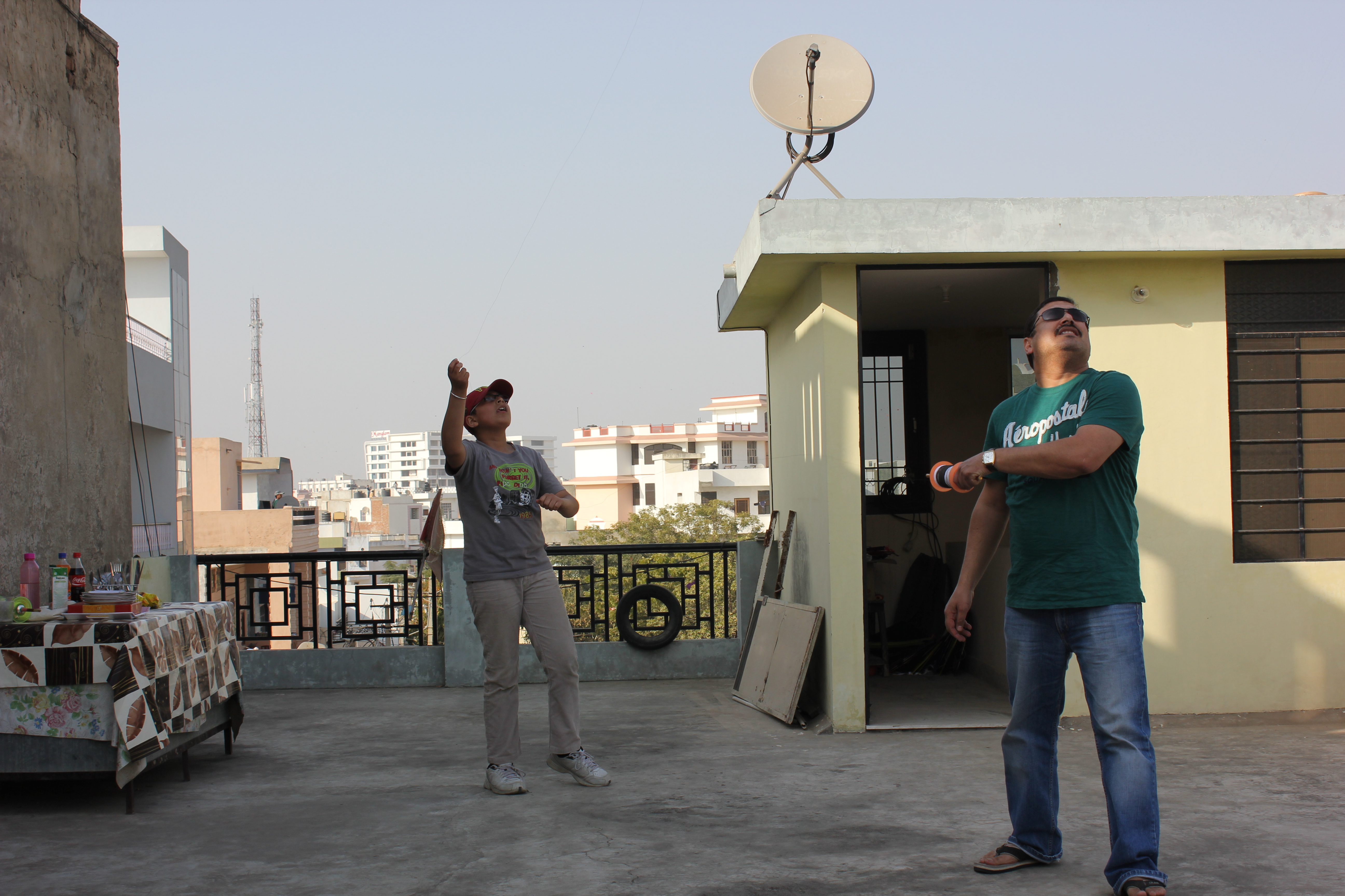 On January 14 every year, people in Jaipur take to the parks and rooftops to fly kites. It is an actual holiday! Our good friend Meenal’s good friend Monika invited us to her home to witness this ritual. It was an adventure finding Monika’s home. Our driver, Dev is not from Jaipur and does not speak great English. Between us (and his phone calls to Monika for directions), we arrived. The hospitality we experienced was so generous. Monika, her husband Rajiv, their son, her parents and his mother and brother invited us into their home, fed us amazing Rajasthan food and taught us kite flying. There were three generations of men flying those kites and we got to witness the excitement, highs and lows of kite fighting. We appreciated the experience!