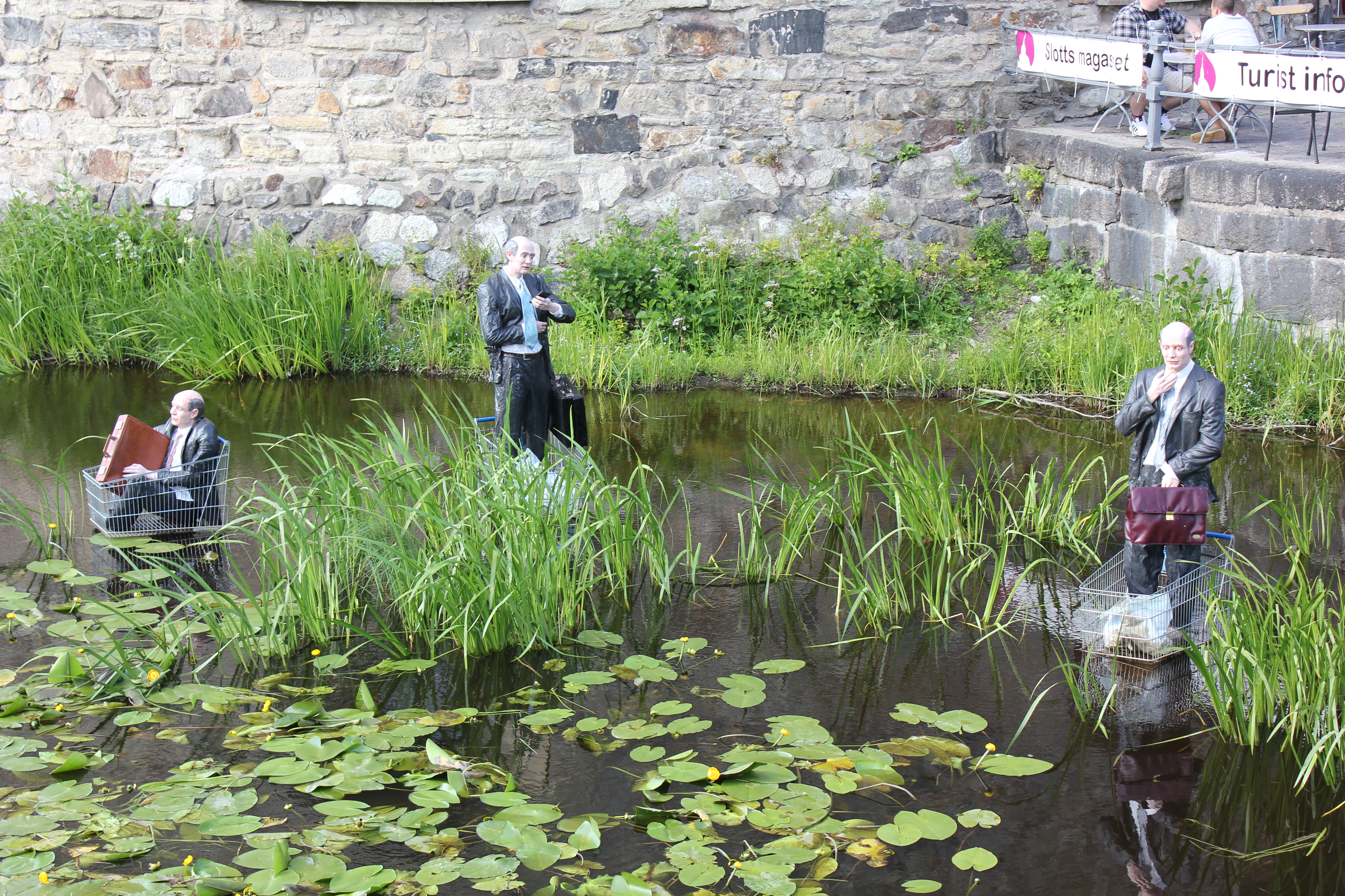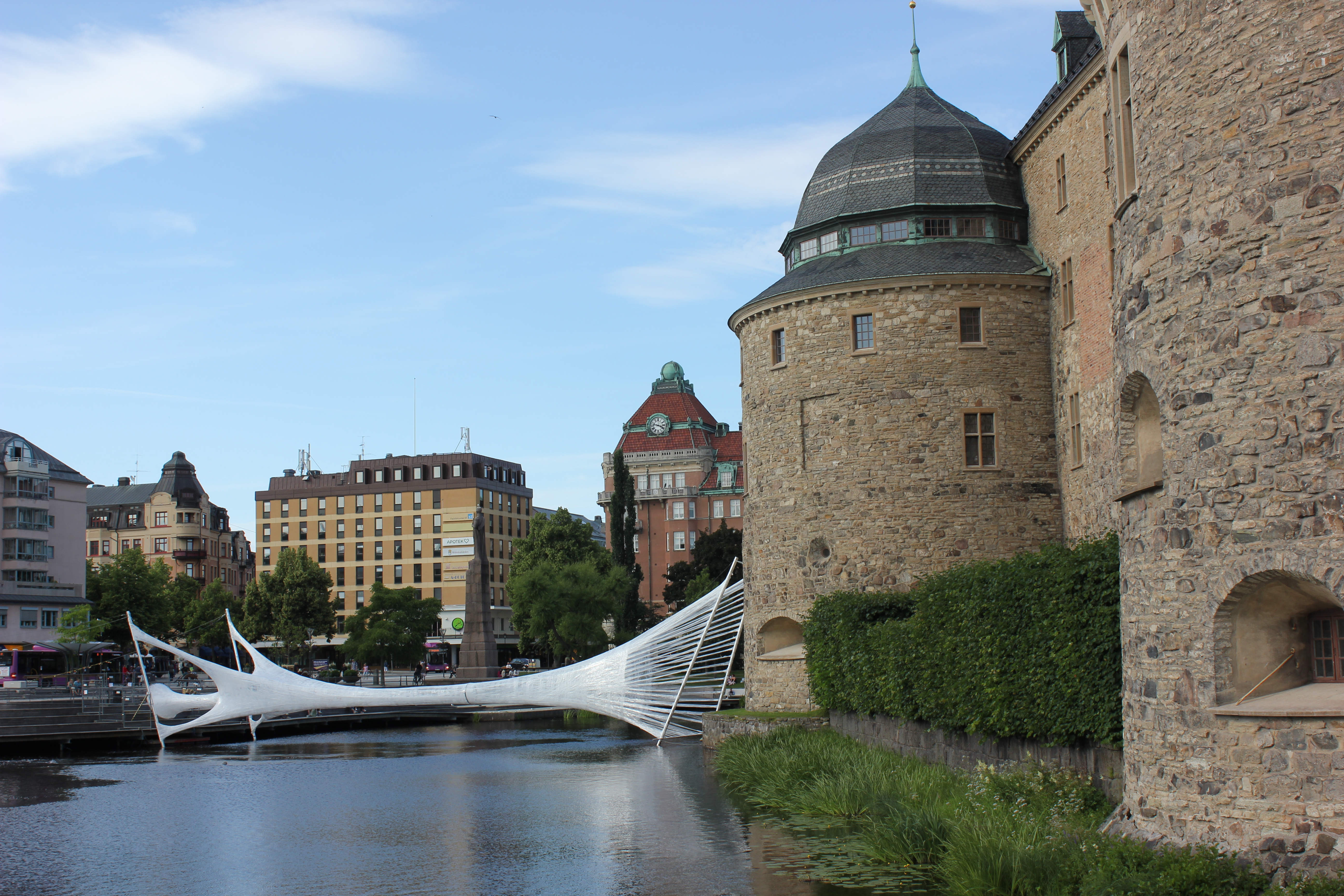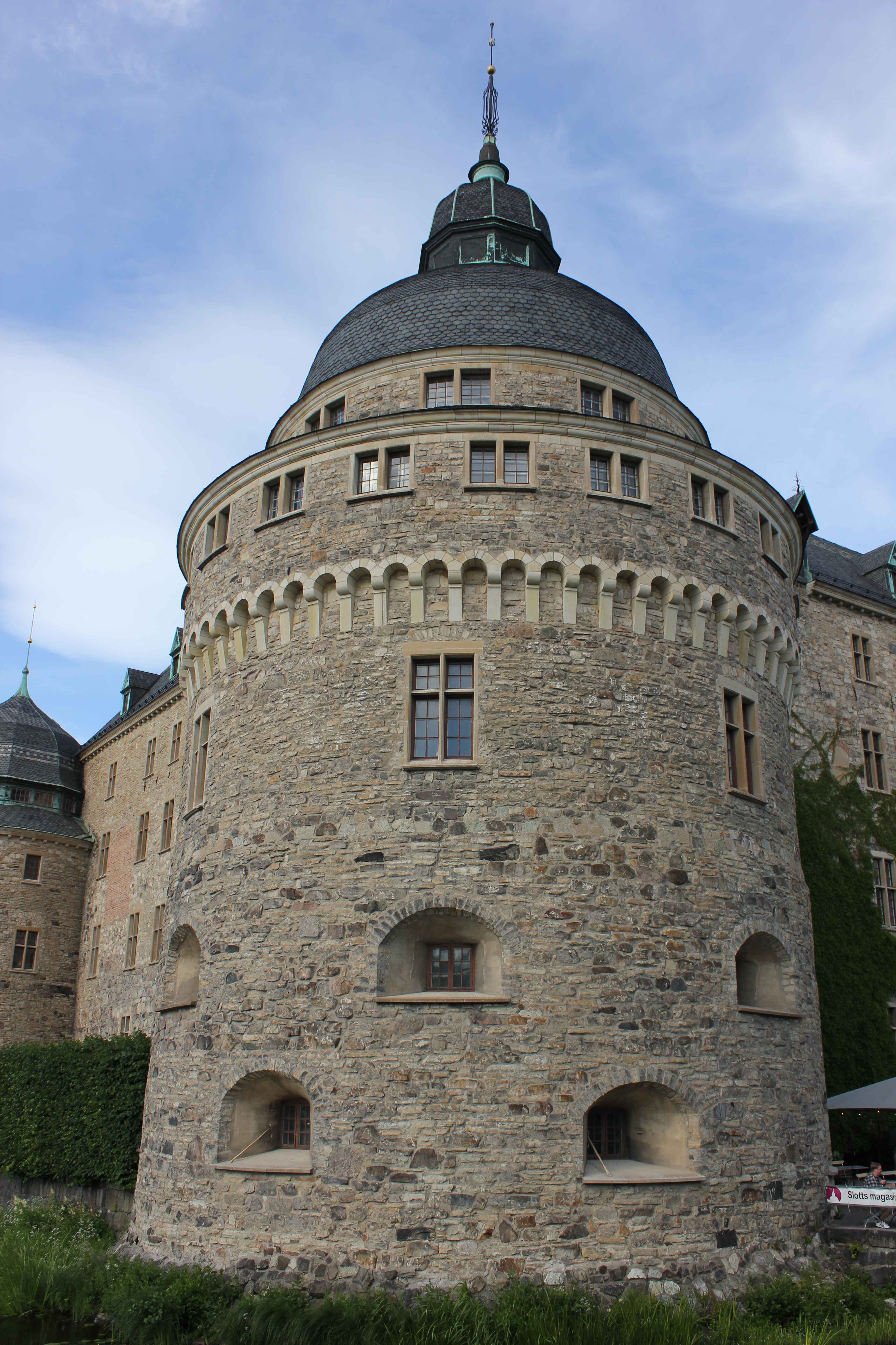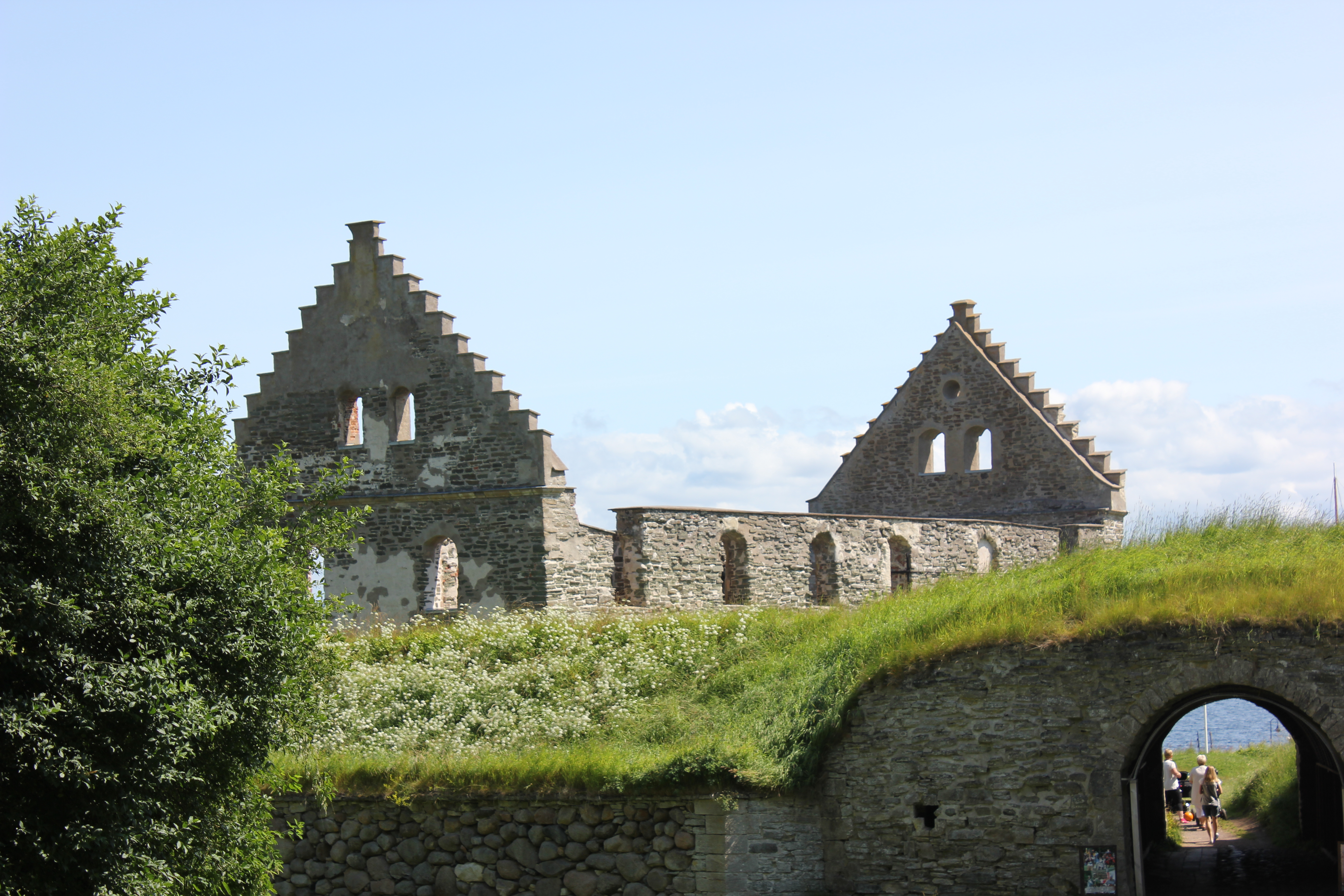 Our second stop was the island of Visingsӧ. The twenty minute boat ride was wonderful. Our first choice was to take a horse drawn carriage ride of the island. The whole island was 14km long and 3km wide. It was too big to walk around and see everything. The carriage ride was the most efficient way to get a great overview of the island. The driver took us through an oak forest that was planted in the early 1800’s and was amazingly beautiful. The little girl beside me asked her mom if the woods had trolls in them. This was the place where John Bauer, the artist I wrote about previously, visited. John Bauer died in a boat accident on the lake that surrounded the island. The trail ride took us by a beautiful herb garden and through the older communities. The kings of Sweden lived on this island for a while in the 1200’s. To Dale’s dismay we didn’t get to see the oldest castle but we did explore an old church and the second oldest castle ruins. The old church was converted into an observatory by a famous, wealthy geek named Per Brahme. He was a relative of a famous astronomer. The family thing led him to cut the belfry off so his students could look at the stars. We went up the incredibly narrow staircase to the very top to get the best view. The stairs were a) steep and b) narrow. The opening from the stone stairs into the wooden landing required us to enter sideways as it was so narrow. The view was worth the ever so scary decent!