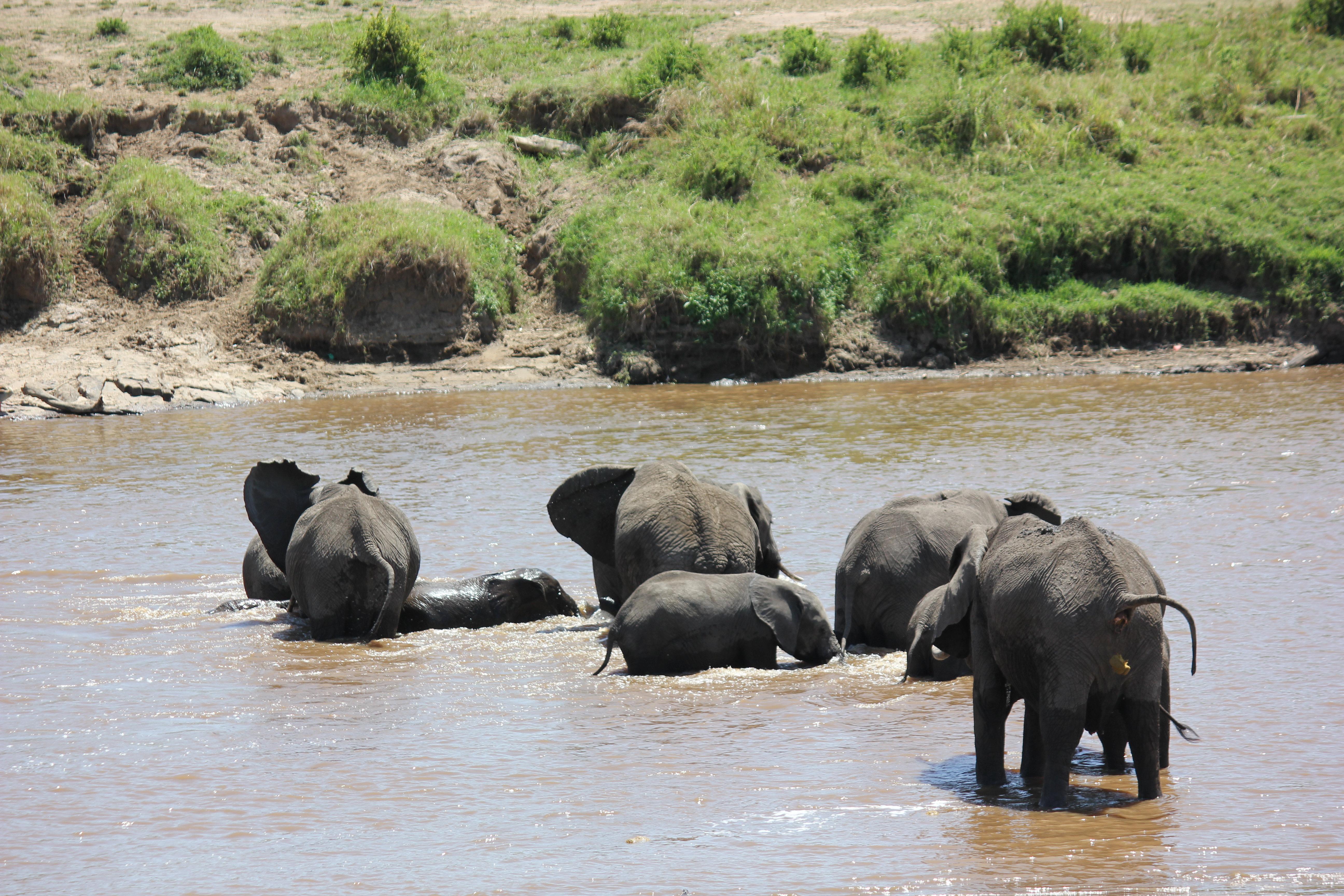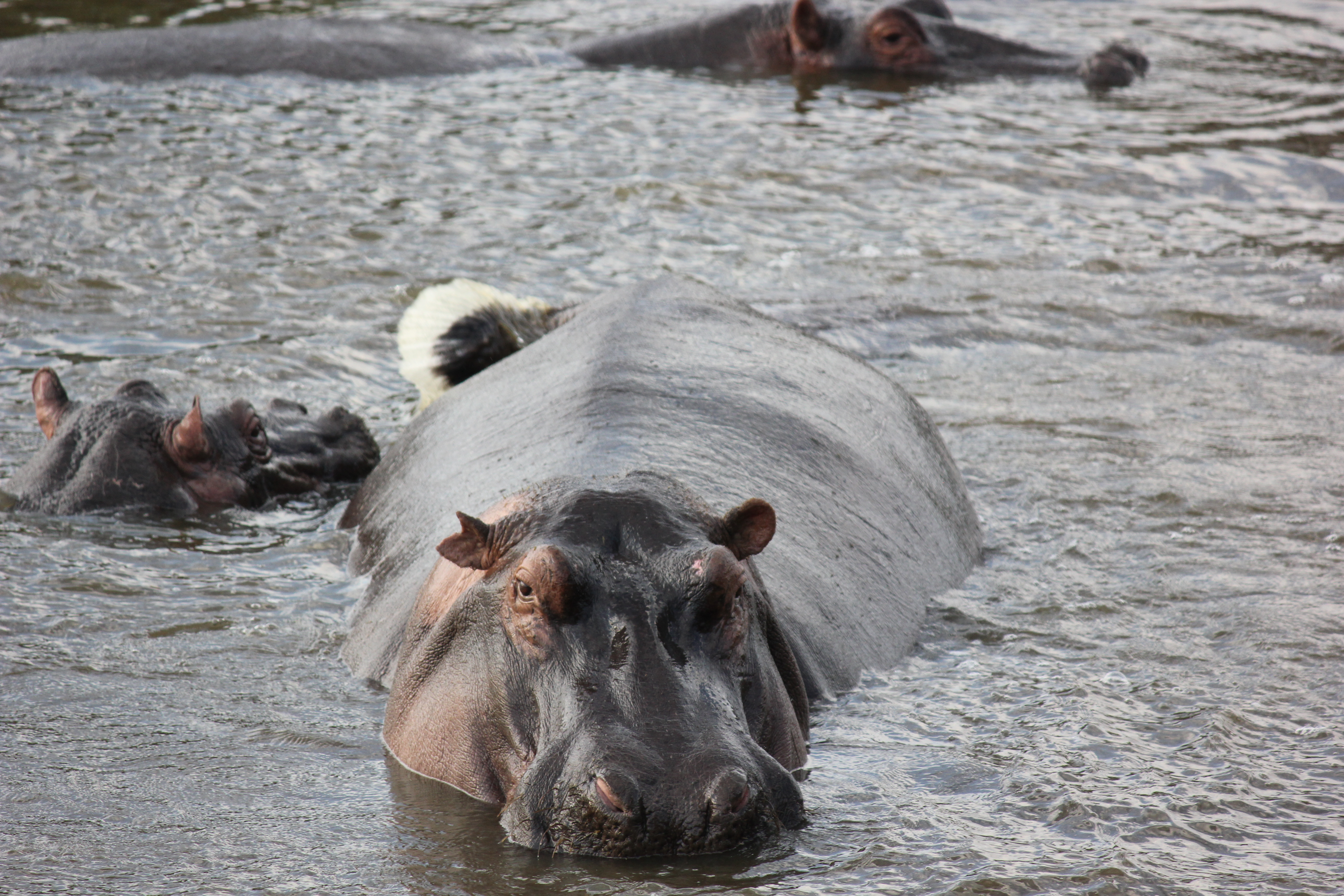 After arriving at our next lodge we set off for an afternoon game drive and saw more new species, including a tortoise, bat-eared fox and a Topi family. Then we also saw a hippo watering hole that kept our attention for a long while.Â