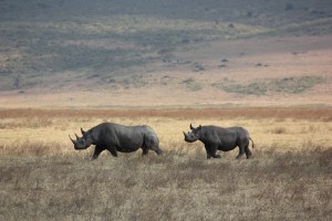 We checked into our next hotel, had lunch and got back into the Jeep for our afternoon safari. The view on the drive down to the crater floor was amazing. We saw an amazing variety of birds and animals including: ibis, spoonbills, Egyptian geese, crowned crane, herons, storks and Kori bustards, hyenas, Thompson gazelles, golden and black back jackals, a hippo, lions AND… TWO BLACK RHINOCEROS!