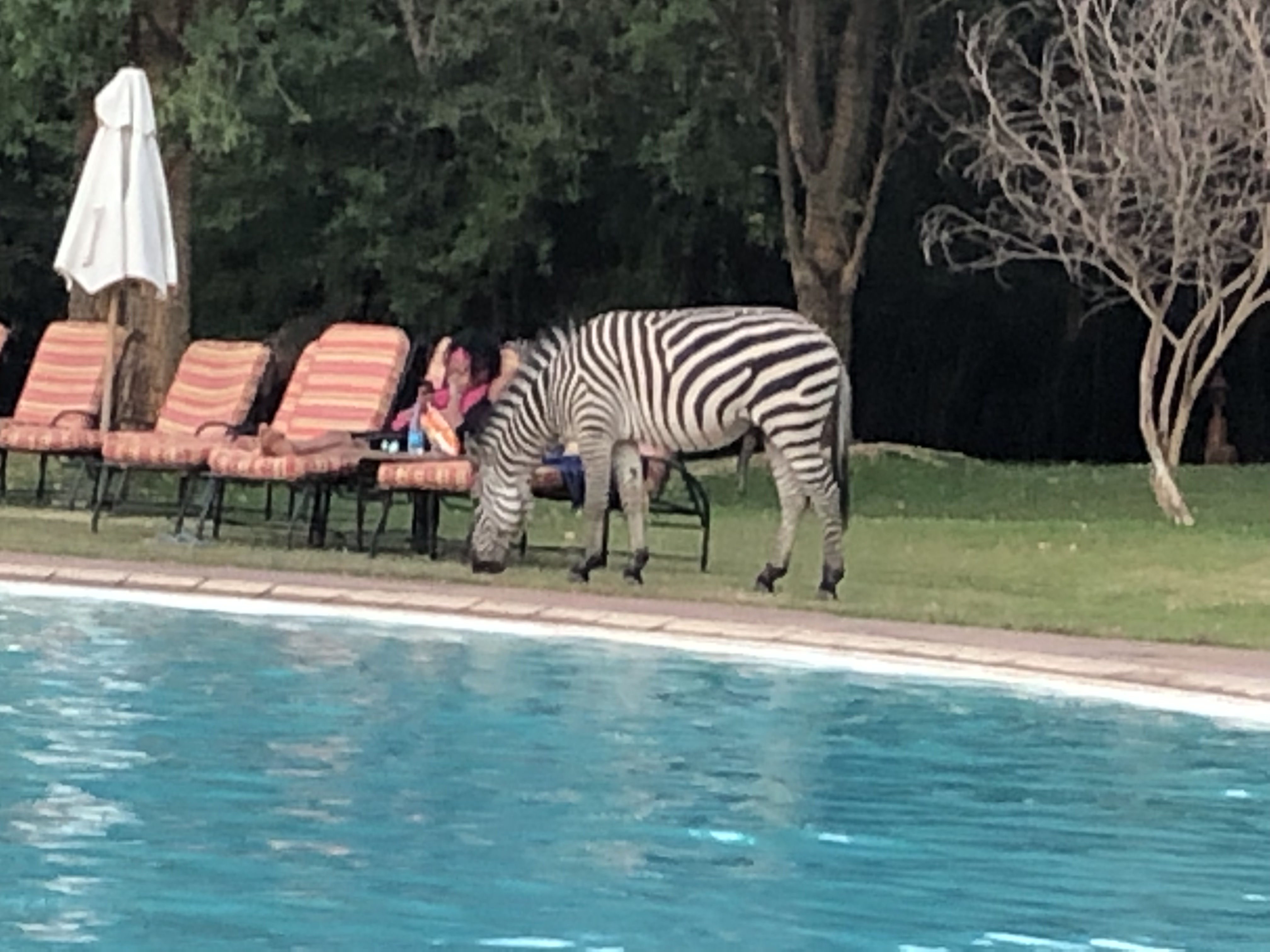 Our journey to the falls took more than an hour and we were ready for refreshments. A live band was playing by the pool and we relaxed while we had supper. The Zebras joined us.