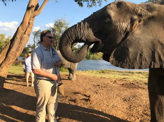 We had time for lunch, a nice buffet at the resort near our next adventure a river safari on the Chobe river. Our group was just finishing so I was happy that we hadn’t delayed them at all. The dinner was interesting. The main entre was warthog stew. It had to be tried. It was good, tasted a lot like roast beast in tomato sauce. They chop up meat bone and all here, so it was sort of like eating goat at an Indian restaurant back home.