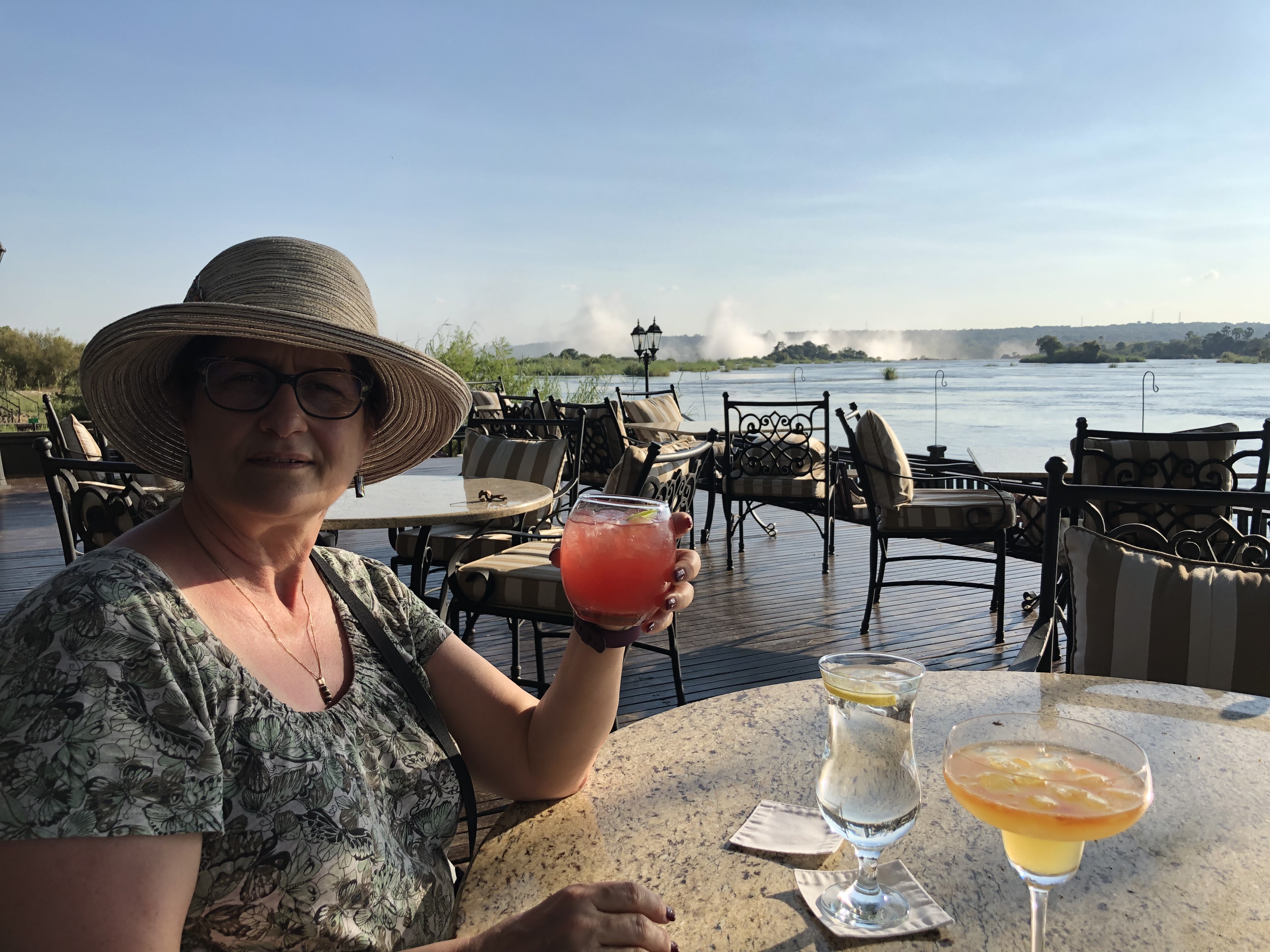 We returned and had a delightful martini on the patio of the Royal Livingstone Hotel, the sister hotel to ours. It is definitely more upscale. We found it interesting that a martini was cheaper than the wine. A glass of red South African wine is typically 14-16$cdn. The martini was$12.