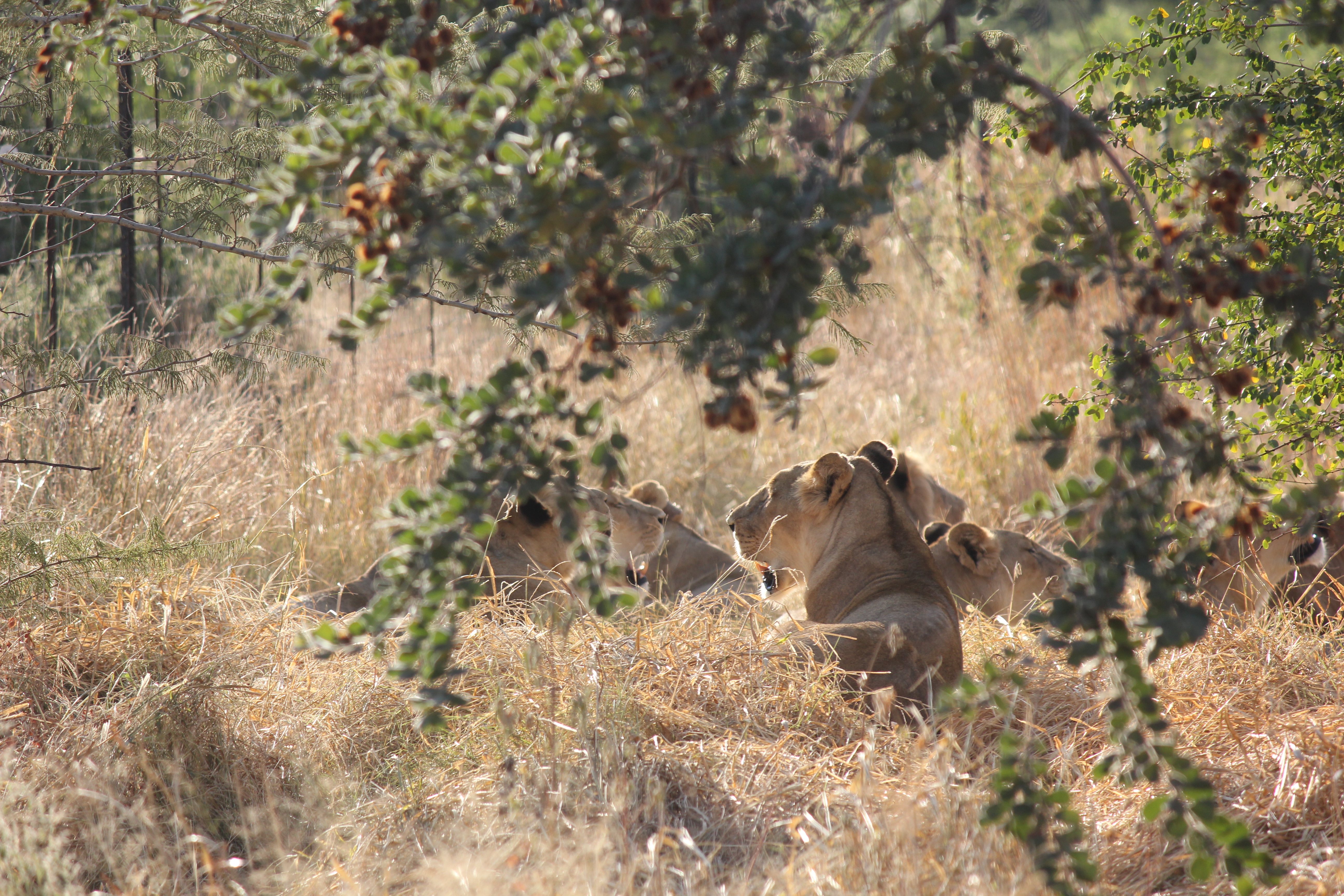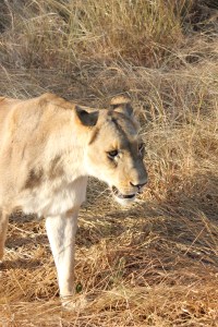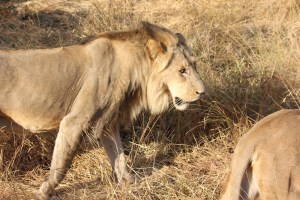We arrived at a hut in the trees and a man emerged inviting us in for a drink and a cookie. It was a great idea. Following our break, this man explained that he would be taking us into an area where there were ten lions. These lions were part of a multi-step lion conservation program in Zambia http://lionalert.org/alert/project-detail/african-lion-rehabilitation–release-into-the-wild-program. The lion population in Africa has been declining for many reasons, all human related. We saw one group of lions in large enclosures as we entered the protected area. These lions were bred in captivity and hand raised by people taking them on walks into their natural habitat. We didn’t stop to see these animals, just said hello as we drove to the next gate, where the guide carefully checked the bush before opening the gate to let us into the second phase of the project, wild lions. These lions were released as a pride into a natural area (large enough for the lions to range naturally but fenced to keep them in. These lions had cubs that were then raised naturally without human interference. When old enough the younger of these lions are released into national parks that are trying to build their lion populations. It was fascinating to see what was going on. While they warned us that we might not actually see lions on the drive through this area, we needed to be alert. The guide also warned us to stay seated in the Jeep at all times and, no matter how close the lions come to the Jeep, do not panic. Well, needless to say, we found the pride and they came close to the Jeep. It was not scary at all. They don’t recognize the Jeep as a threat, and if we don’t bring attention to ourselves, we were pretty safe.