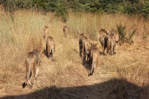 who lives in tunnels in the river bank. The warthogs were interesting. We noticed that some of them kneel to eat, a unique way of getting down to earth. The drive was interesting and unexpected. It wasn’t described in the brochure at all.