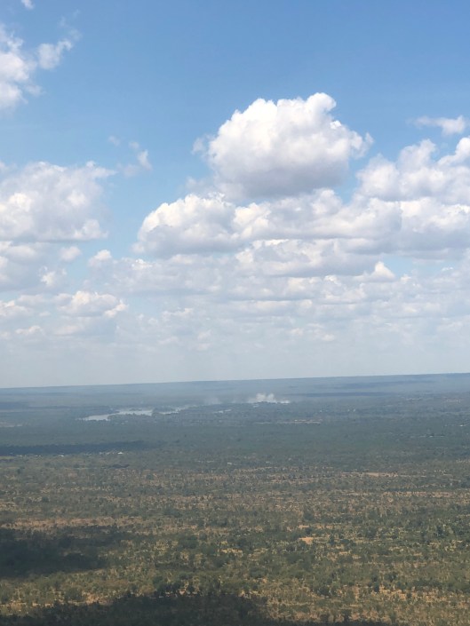 Arrival in Livingstone Zambia was interesting. The landscape is flat with lots of scraggly bush, it reminds me of the prairies in many ways. In the distance we could see what looked like smoke on the horizon.