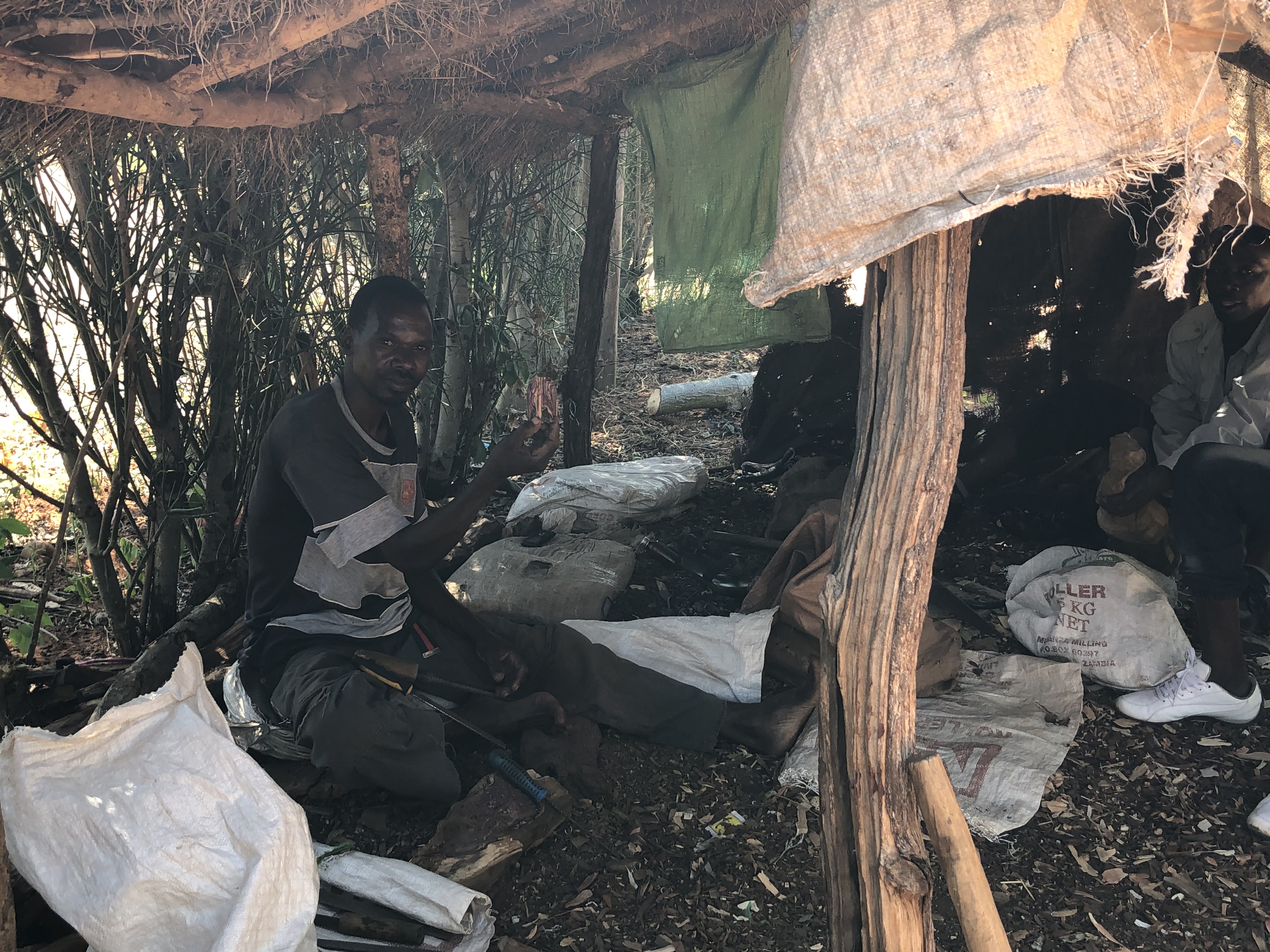 We were somewhat dismayed to see we were the only tourists present because all the merchants were focused on us. Our guide explained that there were 6 sections in the market, where several families had the booths that sold their handiwork. Her job was to bring tourists to the appropriate gate to ensure fair access to tourist dollars. We had seen the men making the carvings in the village “factory” and their wares were on sale. The bargaining began in full force. We had decided to spend our souvenir budget here because we felt sure that the objects were authentically produced by the local community and because we knew that there would be some significant pressure to buy. One fellow asked to barter a bit. He wanted the carabiner from Dale’s backpack in exchange for giving him a good deal on some statues. Believe it or not all the items cost either 100 Kwacha or 300 Kwacha. We now have some nice souvenirs.