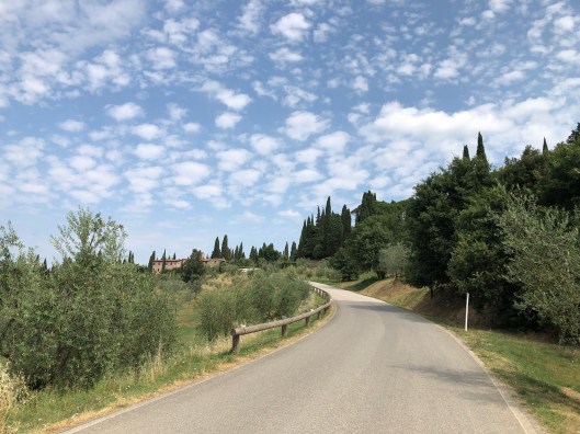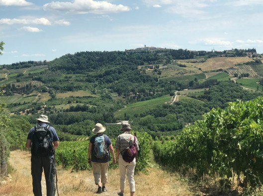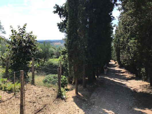 The sounds of these insects were soothing and a welcome change from the ever present cicadas. We continued through vineyards, around churches and through fields and had a pretty good day. The reality of how the end of our day would go began as we stood at the top of a vineyard and looked across the valley to the top of the next “hill” and realized it was Radda.