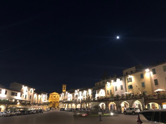 I noticed the family next to us was speaking Swedish, so of course I had to say hello and practice. They were kind. Then our waiter told us the whole vineyard/hotel was owned by Swedes. We had a great time. The food and wine were 😋 delicious. We geared up for the last 2 km of our 11.4km journeys day made it back to our hotel minutes before the skies opened up. Dale got in a swim before the real deluge began. It was over quickly and we had a lovely meal in the Greve town square.
