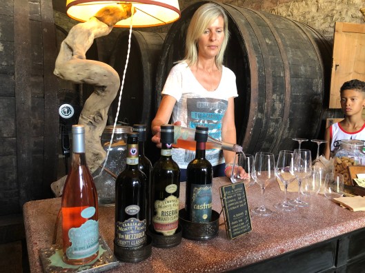 We were on the right track. We were told about the difference between wine that meets the Chianti official status (DGOC, i.e., minimum 80% Sangiovese grape, grown in the Chianti region, aged minimum 2 years and 56 other rules) and independent local wines. They do much of their aging in concrete vats. The rose was deliciously and the Classico reserva was smooth.