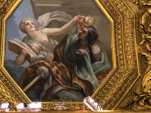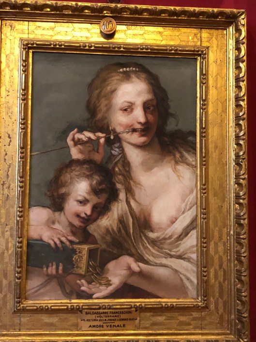 The walls and ceilings were covered in paintings. The rooms were richly decorated and there was a lot to see. There was also a great number of statues. This one was original to the entrance to the Boboli Gardens and has recently been restored.