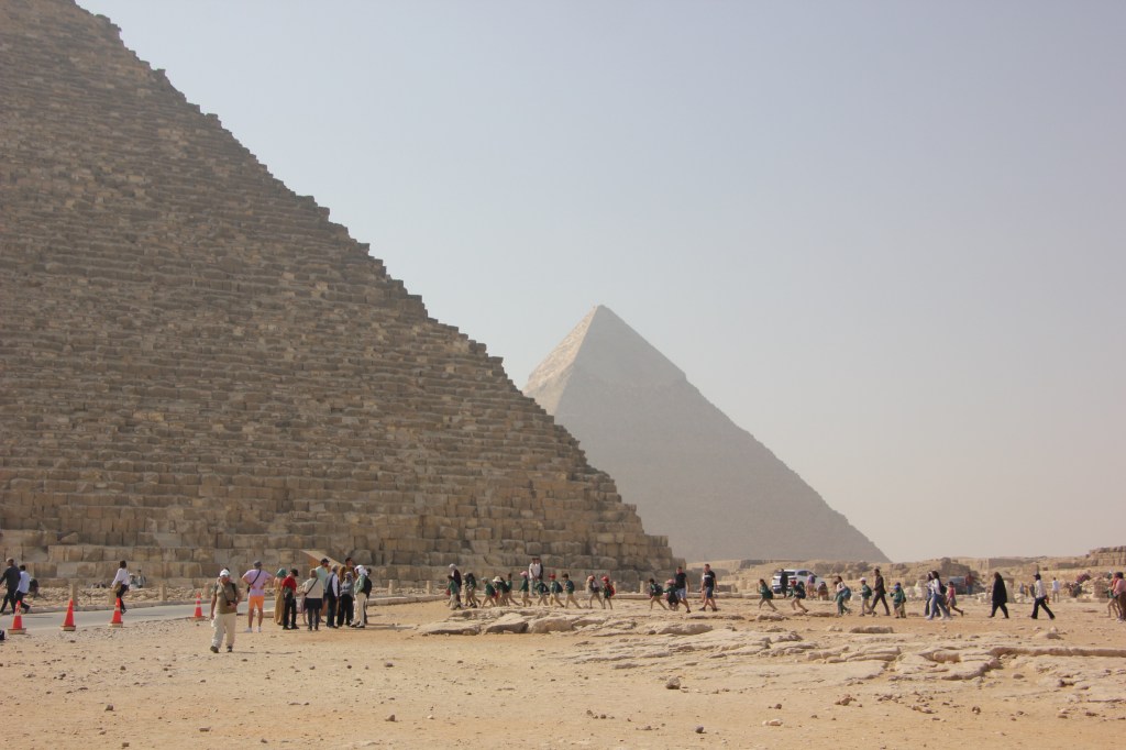 We survived our travel day yesterday and got to the hotel around 7 pm local time (9 hours later than Edmonton time), had supper and went to bed. We got up bright and early for breakfast and tour briefing. I took a moment to look outside my room window in daylight and the pyramids were right there in front of me.