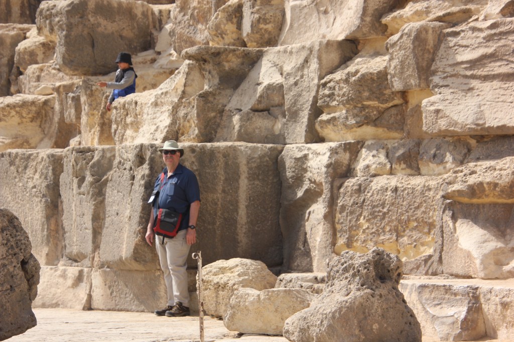The great pyramid is huge. To give a perspective, Dale is 2 metres tall and he is standing at the base of this pyramid. the large pyramid is 480 ft tall. The second one is 450 ft but built on higher ground so looks larger. We noticed the third one was much smaller and not much was said about it. We wandered around the pyramids and were allowed to climb up a few blocks to get a sense of the build. It was impressive.