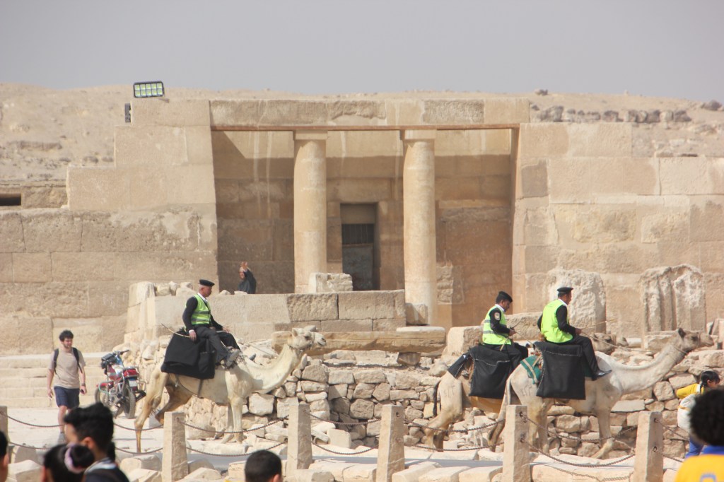 Our second stop was an opportunity to go for a scenic view of the Giza plateau and a camel ride. The gang went for a brief ride while I focused on the camels. They are massive and fun to ride. They are also “working” police animals.