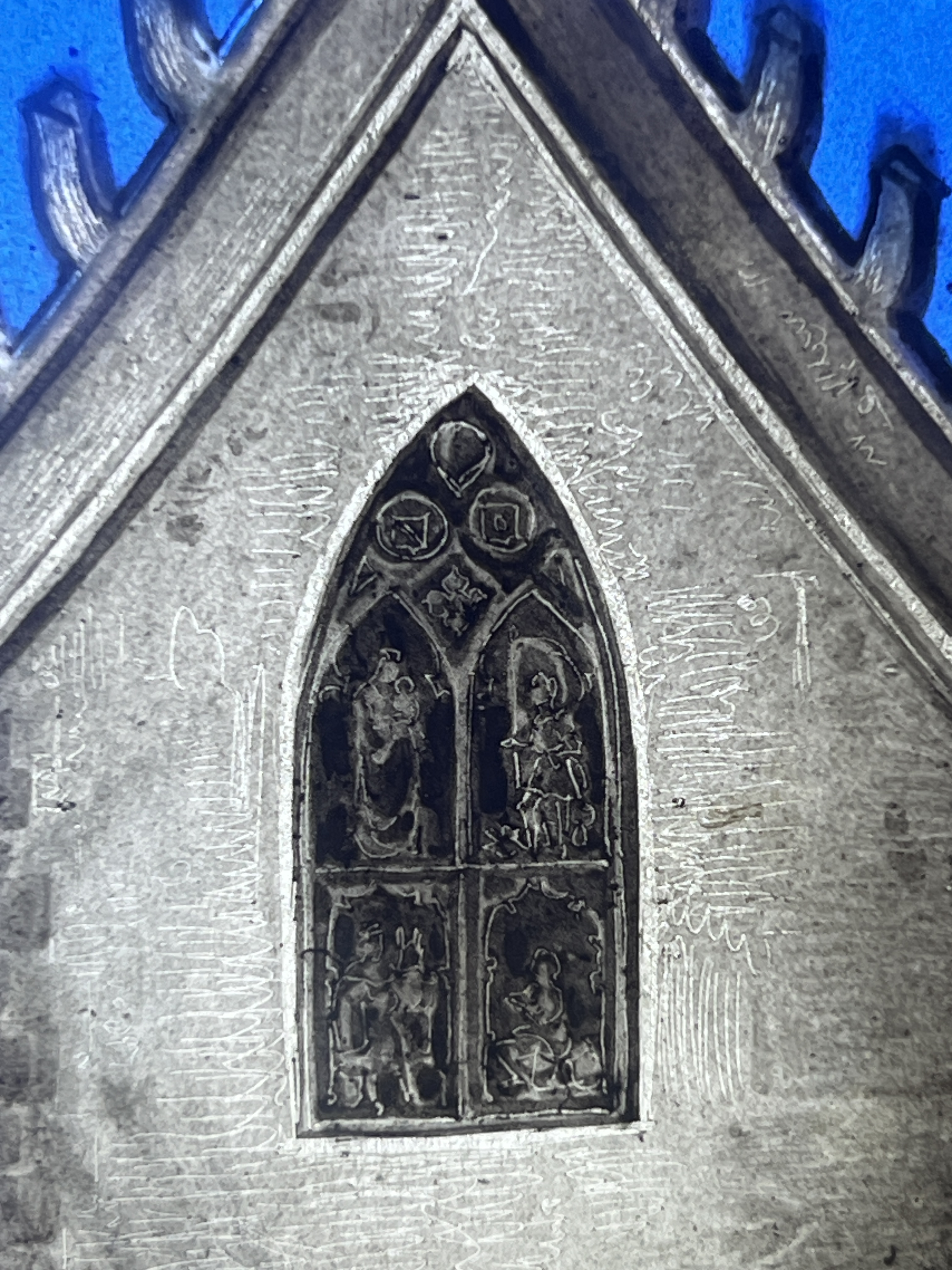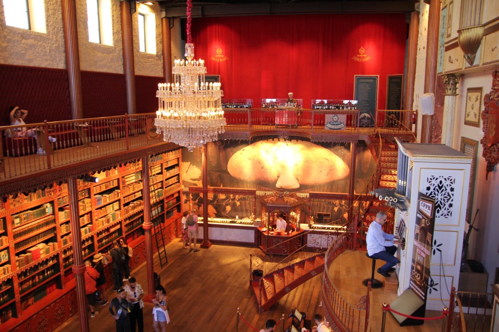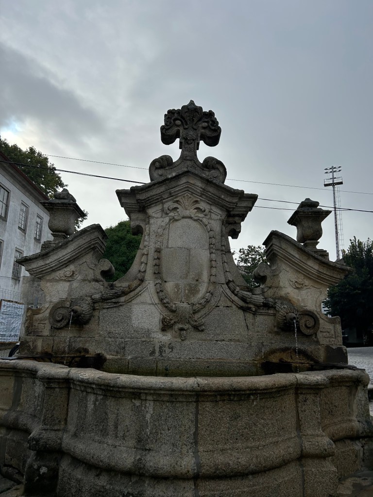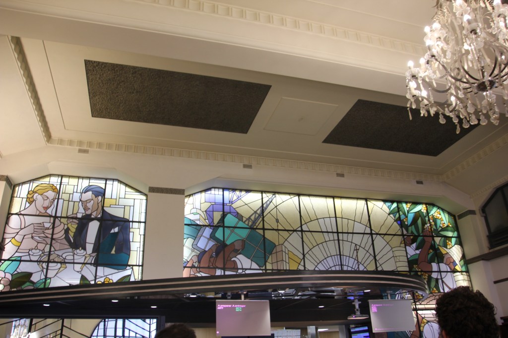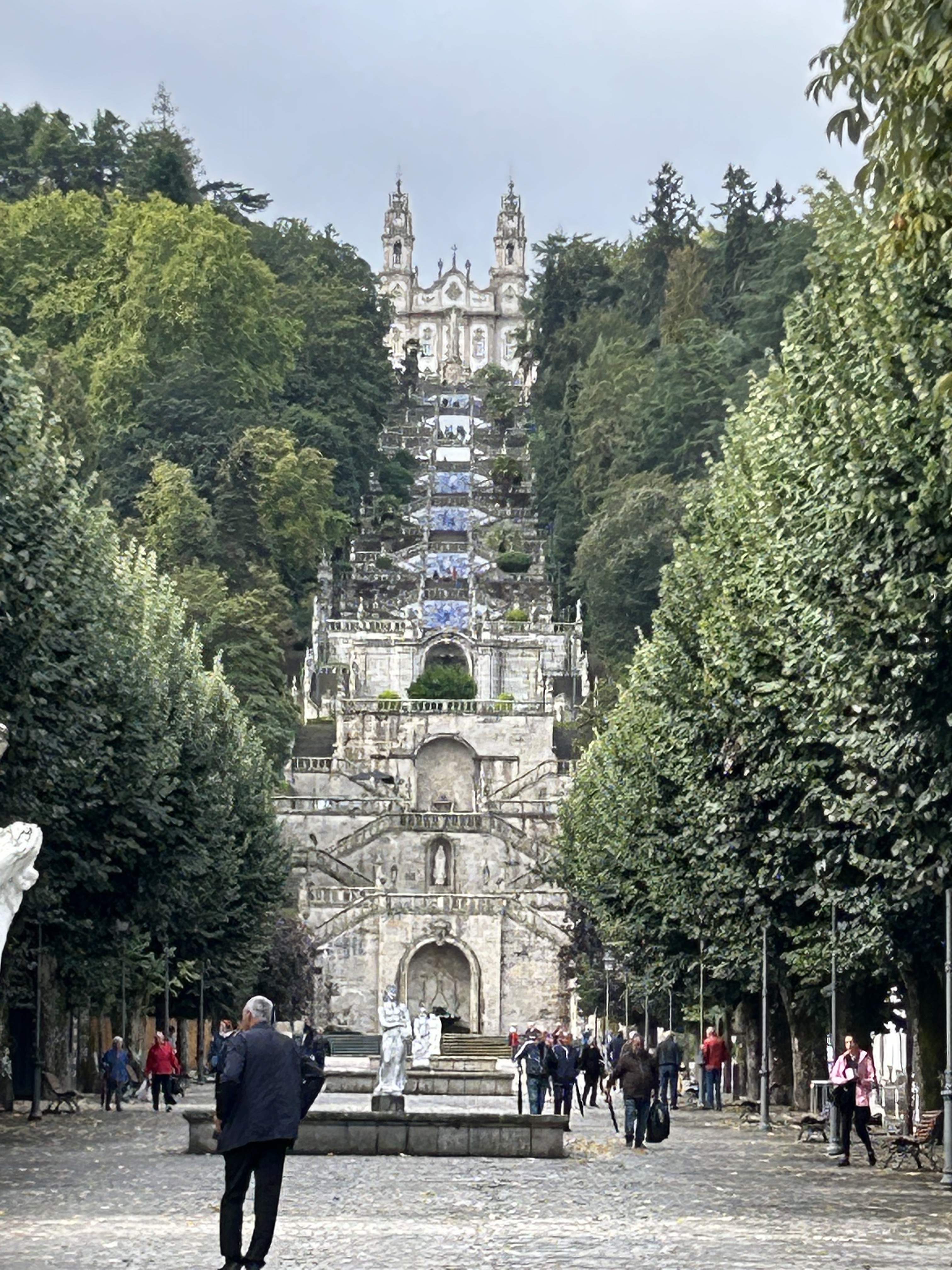 We appreciated learning the full story of the palace as we walked through the deliberately wild gardens. The calm of the gardens was a juxtaposition to the chaos of the crowds of the palace itself. Rui encouraged us to focus on the exterior and the story rather than the internal trappings of the Victorian era. The one interior we did explore was the chapel, original to Manuel’s time. It survived the earthquake of 1755 and remained as it was with the exception of the stained glass window. If you look closely at the chapel window in the pane with the king in front of the chapel , you will see the modern stained glass window in the chapel.
