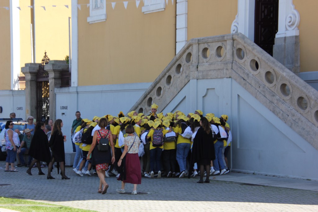 The Pina Palace started life as a monastery founded by King Manuel I. Apparently Manuel was a monstrous king. He expelled the Moors and the Jews from Portugal and started the Portuguese inquisition. Rui was happy to see that Fernando was able to transform Manuel’s monastery, where wayward monks were sent as punishment for acting out. The yellow stuccoed buildings are Fernando’s, the red stucco is the original monastery.
