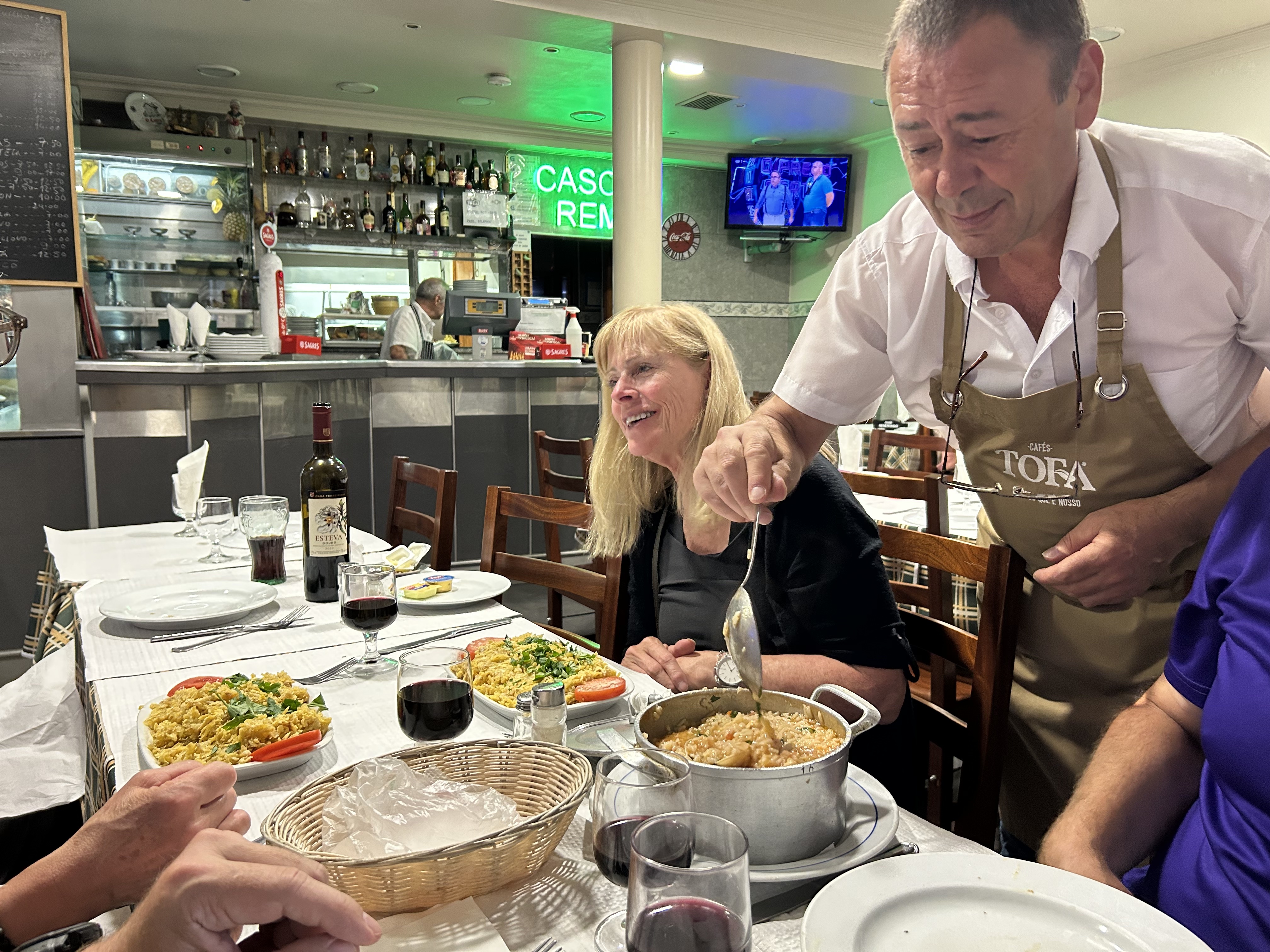 We spent our last evening at a local Portuguese restaurant across the street from our hotel. The host directed us to a reserved table as if he had been waiting for us. He spoke no English and, as we engaged in pointing and pantomime to express our choices, he was clear that we could only order the small sizes on the menu, no matter how hungry we felt. He was correct, the food was plentiful and authentically Portuguese. The wine was excellent as we happily brought our Portuguese adventure to an end.