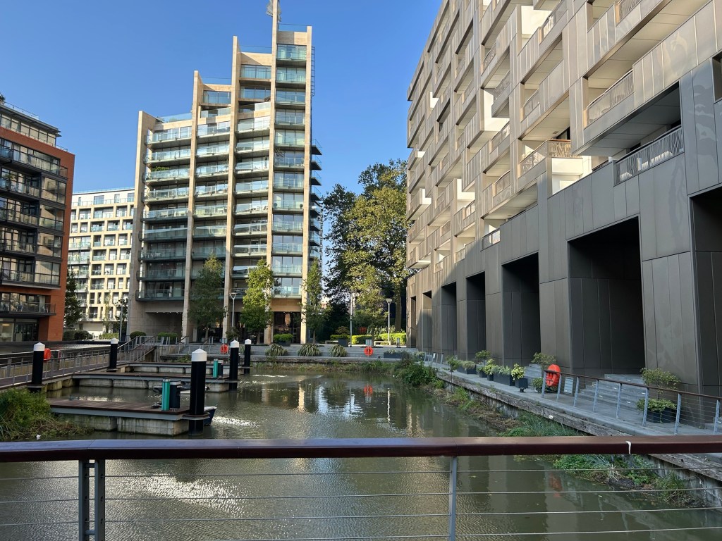 We found our way to our home for the next 10 days. It is a complete apartment in 250-300 sq. Ft. The whole apartment is smaller than many hotel rooms we’ve stayed in. It’s got all we need for a holiday but for most people in the building, this is their permanent home. The Grosvenor canal sits in front of Air B&B (building on the right). it is a lovely setting.