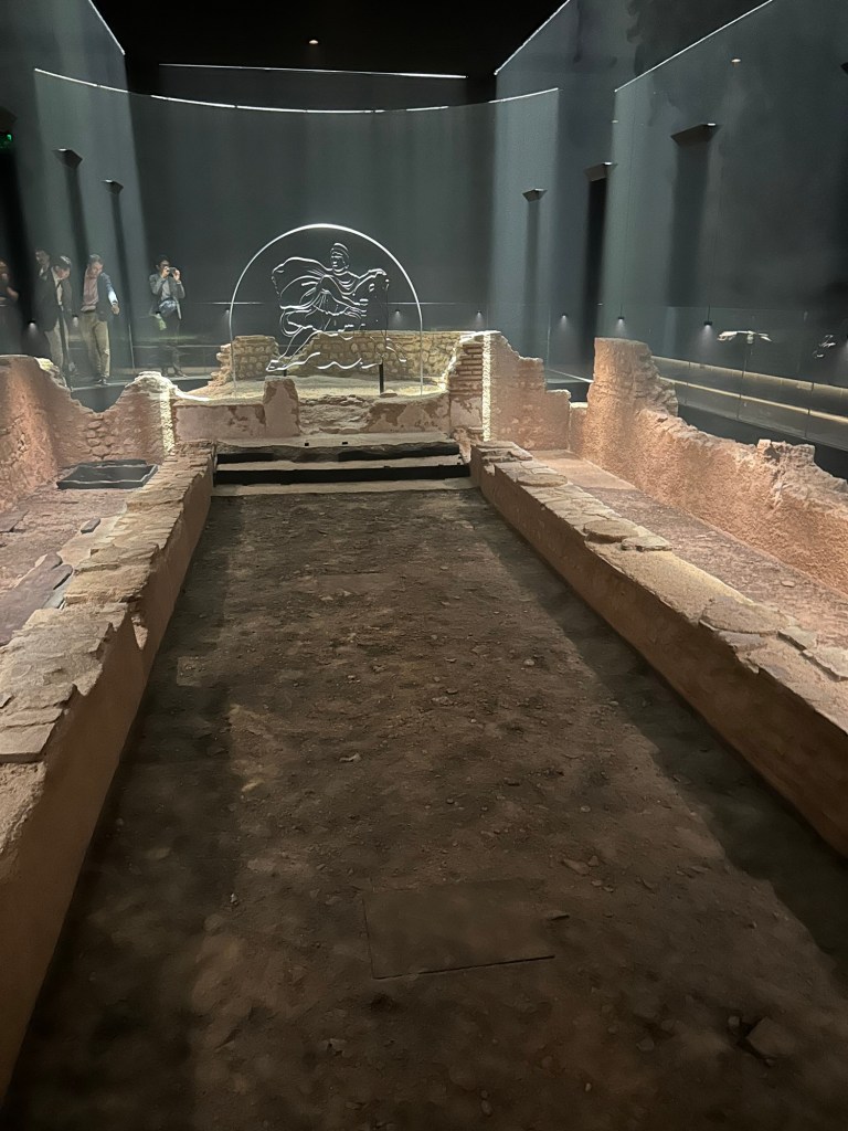 We started our day today at the London Mithraeum Museum. While we waited for our entry time at the museum we had to dodge yet another marathon race. It appears like they run a lot in London. Back to the museum, the 2,000 year old temple of Mithra was found when they were digging the foundations for a major building in the middle of London. The museum displayed some of the artifacts they found as well as the foundations of the temple.