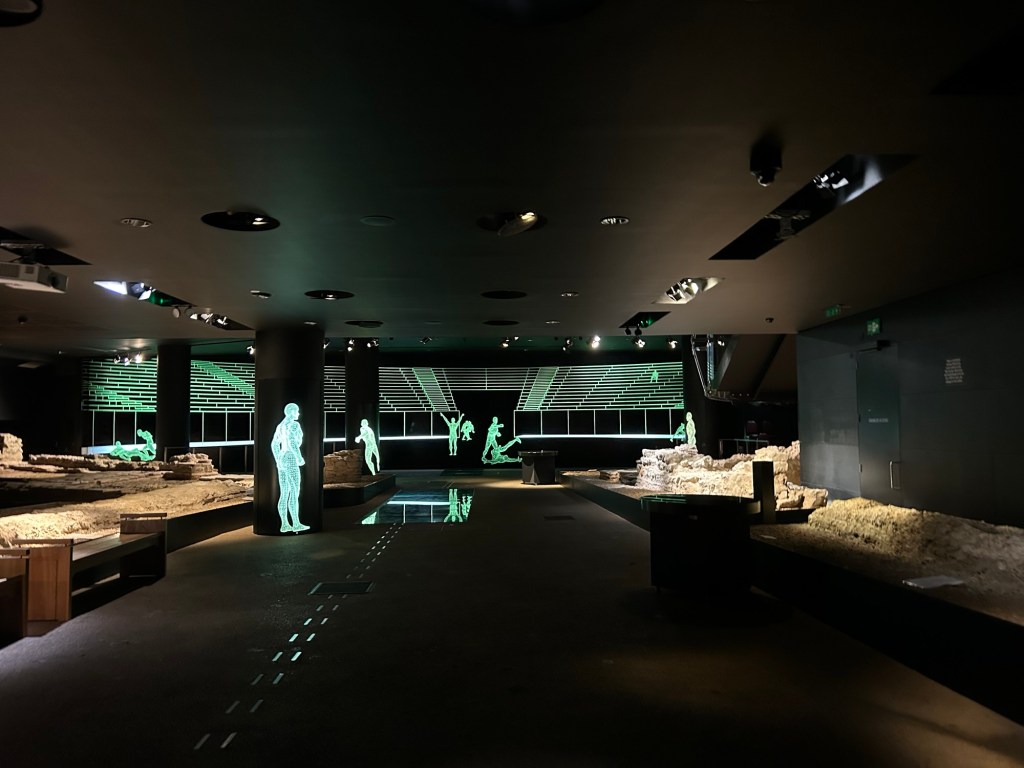 The Guildhall has been part of London’s administrative centre for hundreds of years. The part we saw today was built in the late 1880’s. the original design for the building had to change when they found the ruins of a Roman amphitheatre under the planned site. The current building was redeveloped in the 1980’s as the original building was damaged in WWII. We took a guided toured of the art gallery before heading down to the amphitheatre.