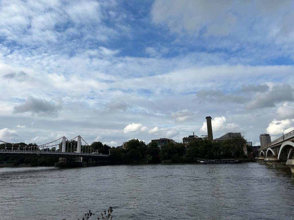 Battersea Power PlantThe Chelsea bridge over the Thames.