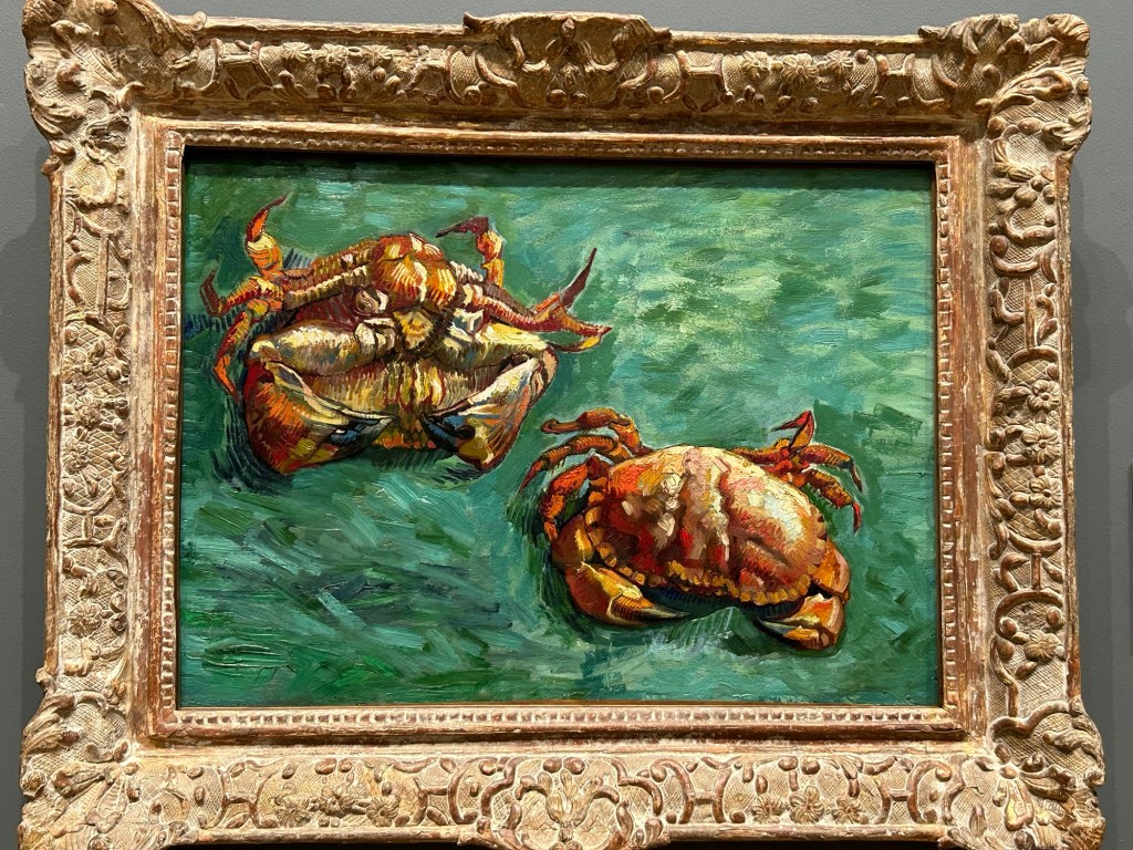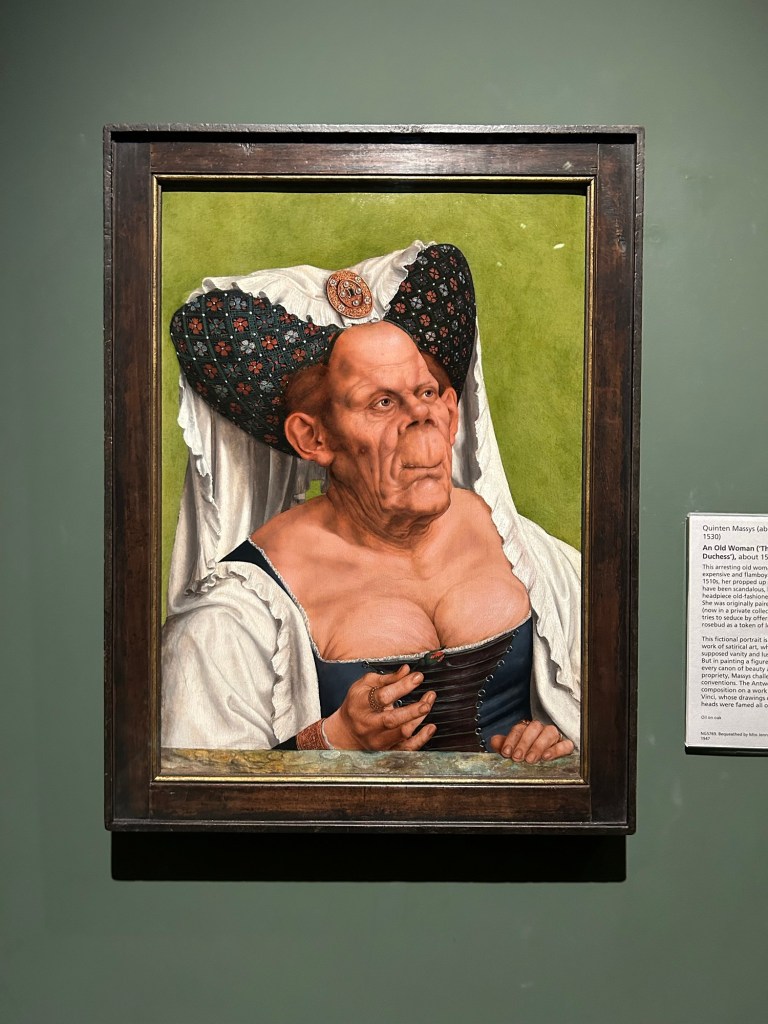 Caravaggio (1571-1610) Salome receives the head of John the Baptist, one of his last paintings. Caravaggio is one of my favourite artists, but a bit of a dark character.Van Gogh’s “Two Crabs“ in the main galleryMichelangelo (1475-1564) “the Manchester Madonna” You know you are important in art history when an unfinished work of art hangs in a prestigious gallery.Massys (1465/6-1530) “An old woman (The ugly duchess)” this one had us chuckling out loud. This is a satirical work designed to get us thinking about aging and beauty. Perhaps Massys was an early feminist?