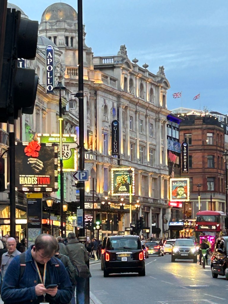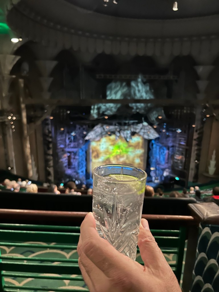 We walked to see Wicked at the Apollo Theatre near Victoria Station. We were impressed that they not only allowed us to bring our drinks to our seat, but they served us in cut glass glasses.