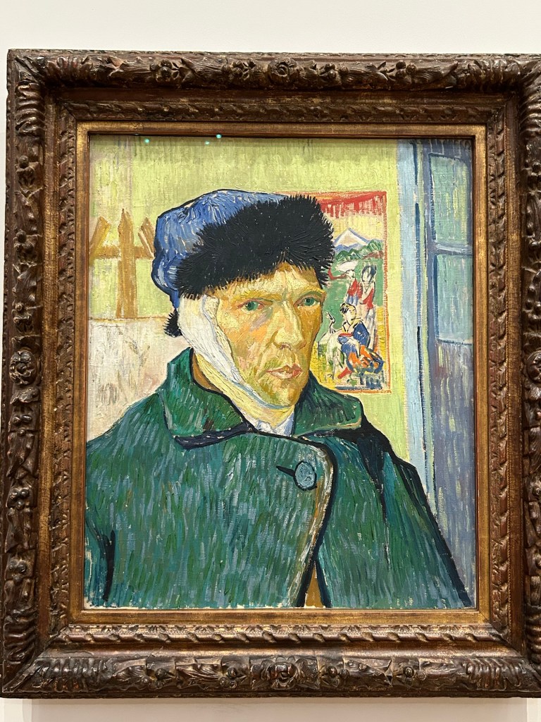 A bar at Folies-Bergère by ManetSelf-portrait with bandaged ear by Van Gogh
