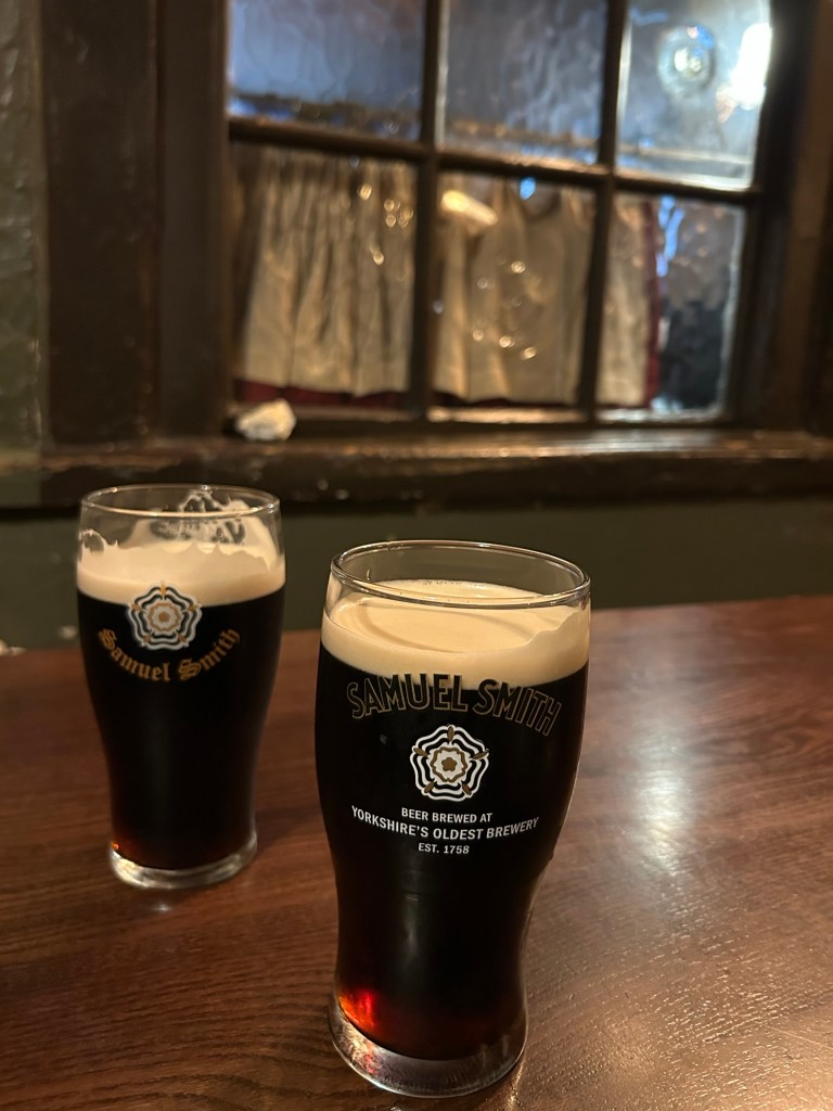 After viewing amazing art, it was time for beer. Our next stop was Ye Olde Cheshire Cheese Pub, one of the oldest in London. A pub has been on the site since 1538 but the original was burnt in the 1666 Great Fire of London. The pub was “rebuilt” in 1667 and has functioned since. Lot’s of famous people have been associated with the pub, for example Oscar Wilde, Sir Arthur Conan Doyle, Charles Dickens and Voltaire.