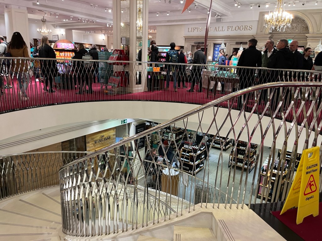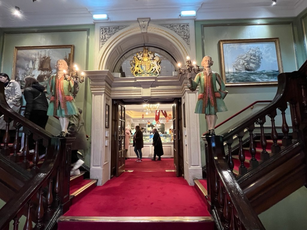 Our next stop was Fortum & Mason. I had seen a YouTube video about the store. It has been a fine food and luxury wares store for 317 years. They have been providing goods to the royal family since 1910, especially tea and food hampers for special occasions. the Weston family (the Superstore & Loblaw folks from Canada) currently own the store chain.