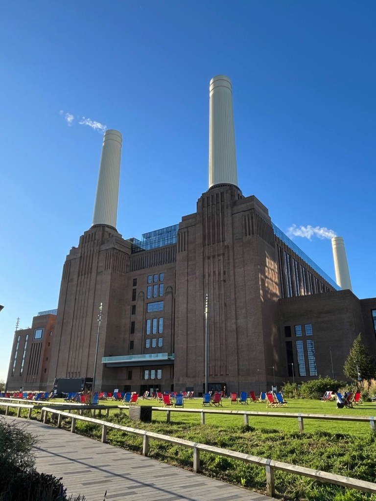 We left the museum and explored Oxford Street – mostly window shopping before heading to the Battersea Power Station. We have several tube stations around us, each taking about 15-20 minutes to walk to. We hadn’t tried the Battersea one yet so we were happy to learn that train from there would be the best way for us to take to the National Gallery tomorrow. We never thought about crossing the river before yesterday, despite having seen the Battersea Power Plant building the first day we were here. It seemed so far away but, only a 20 minute walk. They converted the decommissioned power station into an upscale residential and condo development with lots of shops and restaurants.