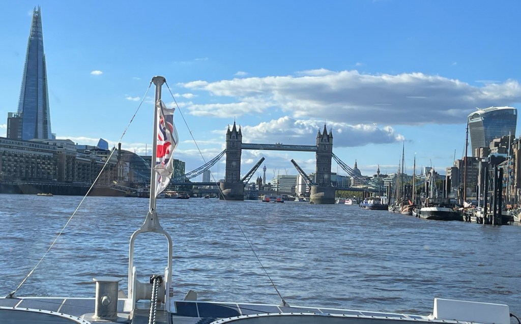 We had to stand in line for 30 minutes to get our Uber Boat back to Battersea Power Plant. We appreciated the long ride back. We also got to see the tower bridge open for a tall ship to sail through. Supper was at a quaint Mexican restaurant. We are now officially done our sightseeing as we start transitioning home. We are leaving our AirB&B tomorrow morning and heading to a hotel near the airport. We need to be at the airport at 6am Monday morning to start the journey home.