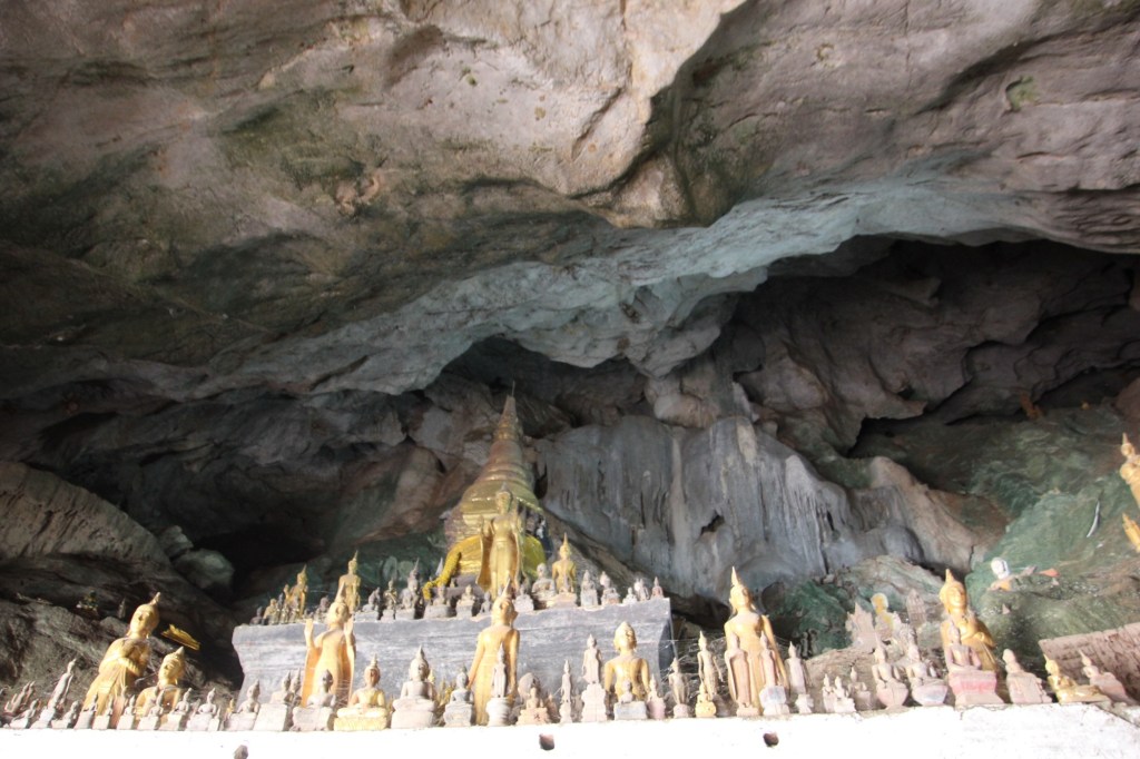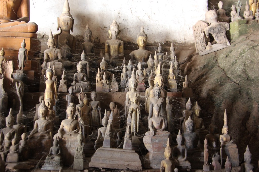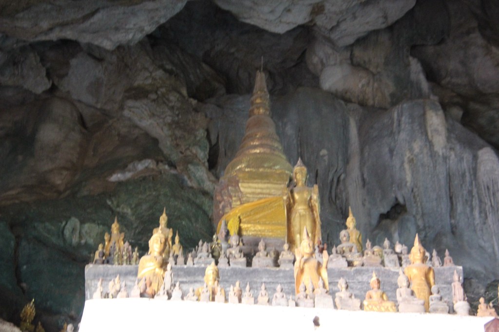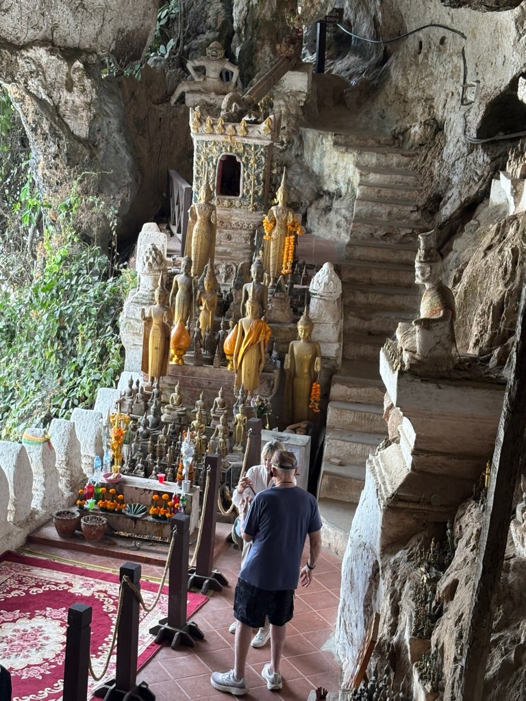 Our second stop was a visit to the Pak Ou Caves located about 25 miles from Luang Prabang at the confluence of the Meikong and Nam Ou rivers. These caves are filled with thousands of statues of Buddha. People have been coming here to worship and leave statues of Buddha for hundreds of years. The statues were in every nook and cranny and every year people from the surrounding villages continue to leave more statues.