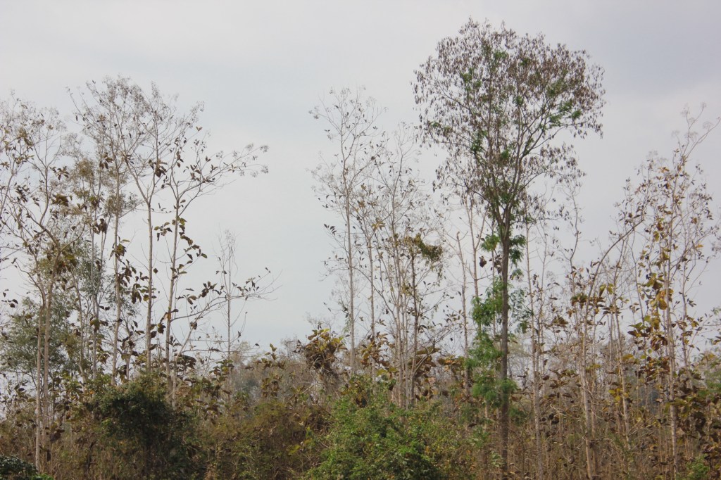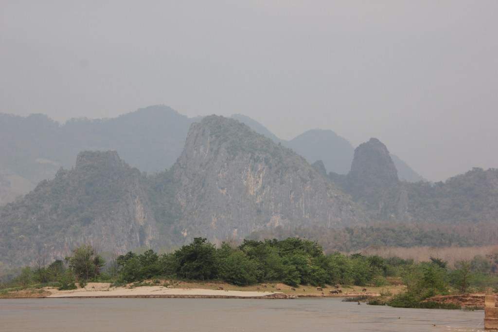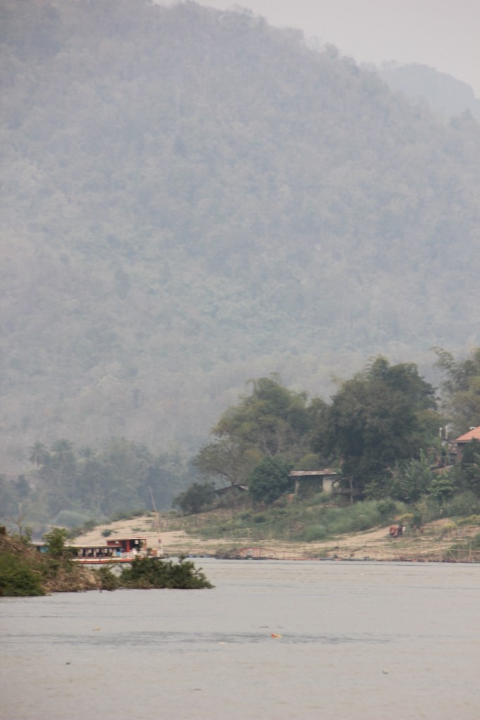 The day was hazy due to smoke from farmers slashing and burning in the mountains to prepare the soil for their crops. The river is bordered on both sides by mountains with more development on the east side of the river.