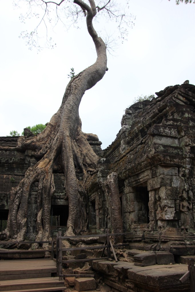On our first stop was Ta Prohm temple, also known as the jungle temple was built in the 1100’s and later abandoned and left as ruins, allowing the giant kapok trees and strangler figs to take over. It was overgrown by the jungle until it was “rediscovered” by Europeans in the late 1800’s. Archeologists decided it was best to leave the temple “as is” and only cleared trees from a portion of the site. The film Laura Croft:Tomb Raider was filmed here.