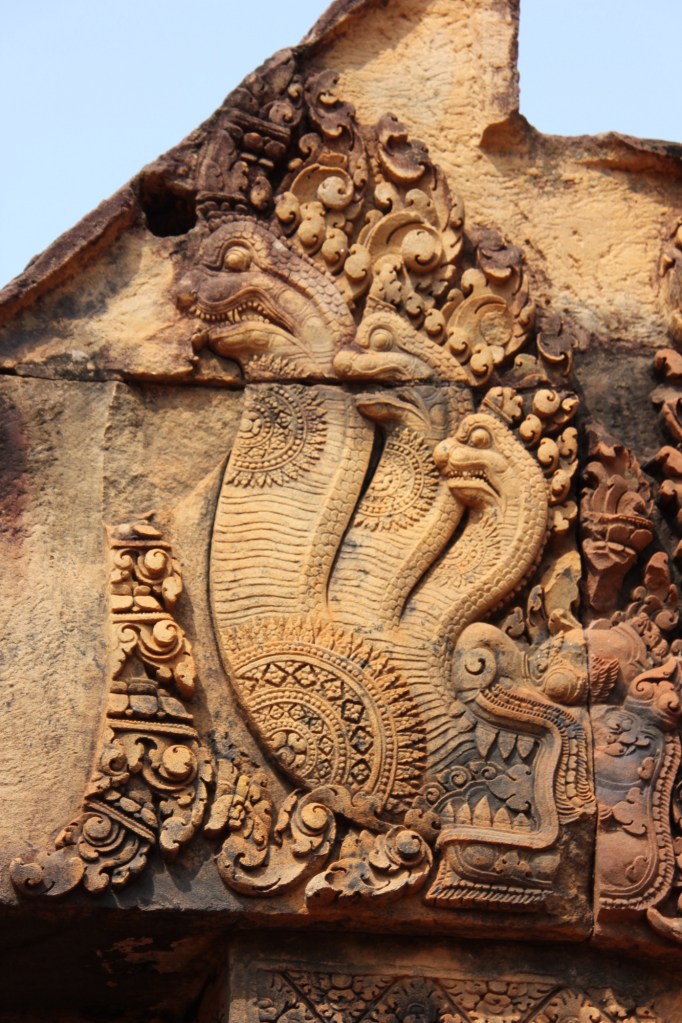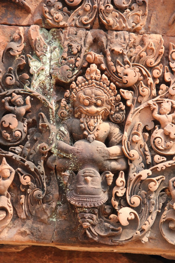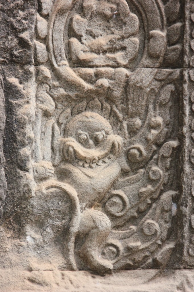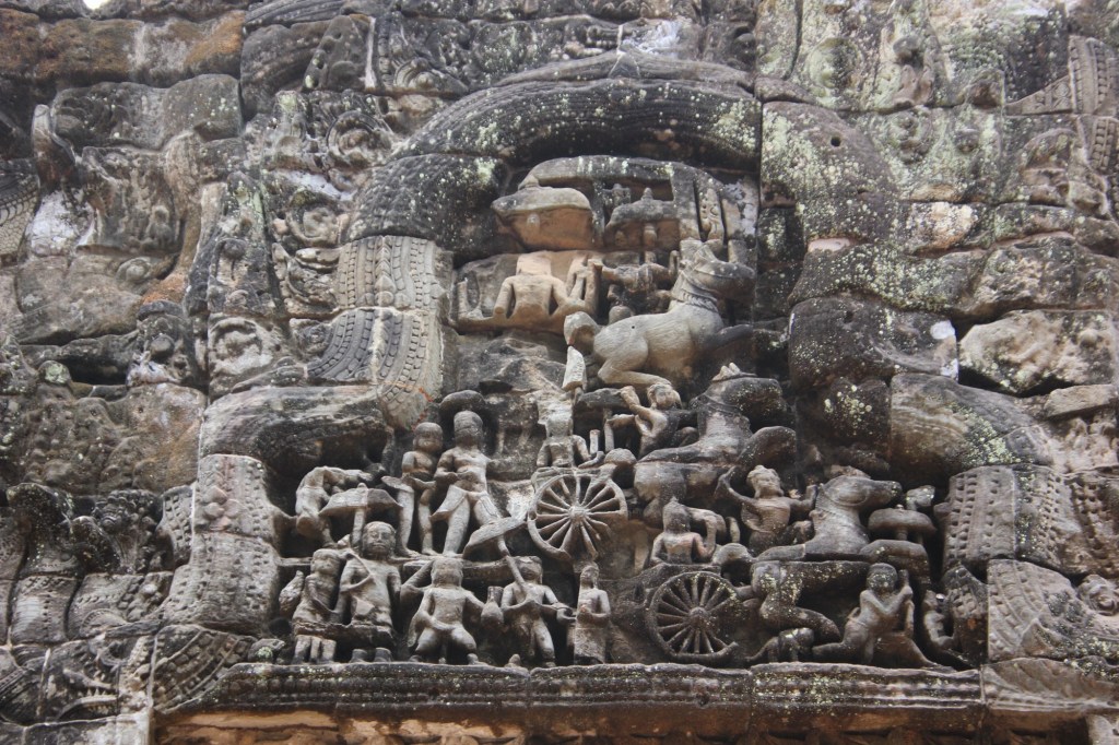 92% of Cambodians follow Theravada Buddhism, a form that arose in the 13th century and emphasizes monastic life, Pali scripture and meditation. The temples, such as this one were originally inspired by Hindu teachings and beliefs, shifting over time to reflect Buddhist beliefs. For example, the our guide showed us this carving and told us the story it depicted.