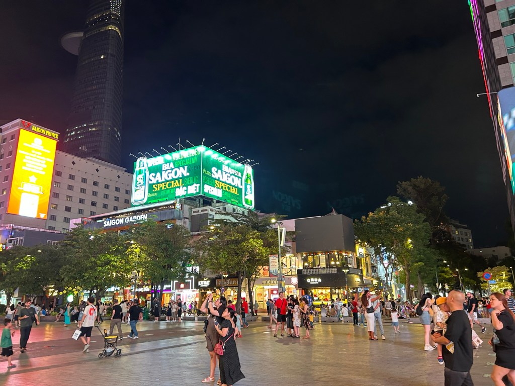 It was a draining day and the bus ride back to our hotel was subdued. We went to the rooftop bar in our hotel for a drink before heading out for food. The Main Street was closed to vehicles Saturday night and we felt comfortable walking around. We only had to cross one street (twice) and we survived both times.