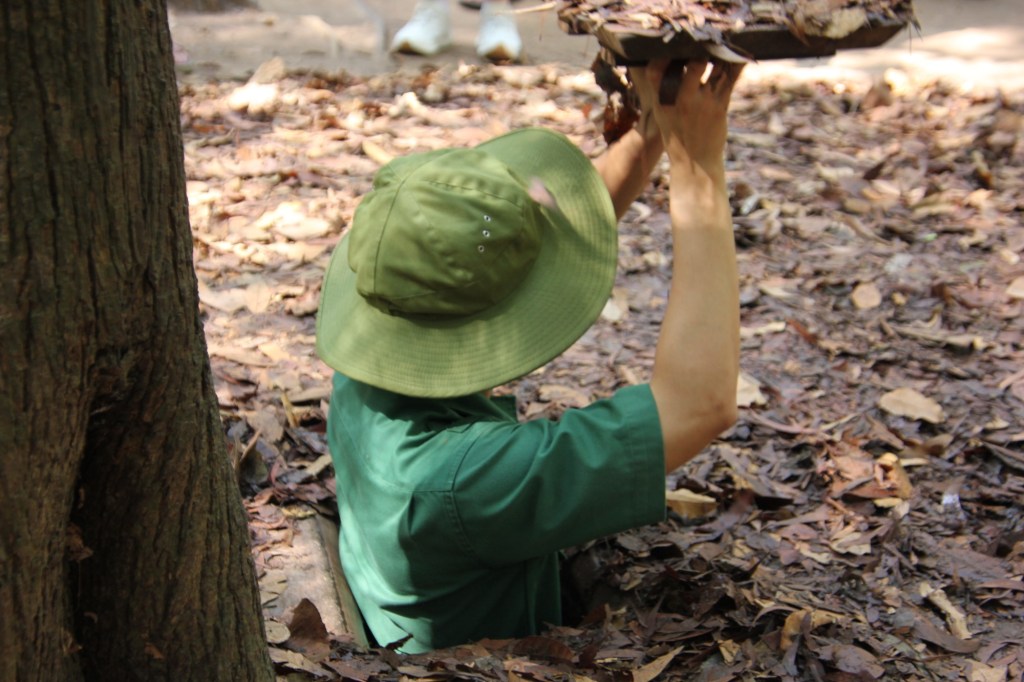 The Cu Chi Tunnels are a connecting network of tunnels in the Cu Chi district near Saigon. These tunnels were used by the Viet Cong during the war in resistance to American and the South Vietnamese. The Viet Cong used this network as their base to engage in gorilla warfare. Viet Cong soldiers lived and worked from this sophisticated series of underground living quarters, meeting rooms, ammunition supply rooms and medical centres. They were designed to be well hidden so that the Viet Cong could surprise and ambush their enemies. We viewed traps, entrances and different bunkers that remain in the area.