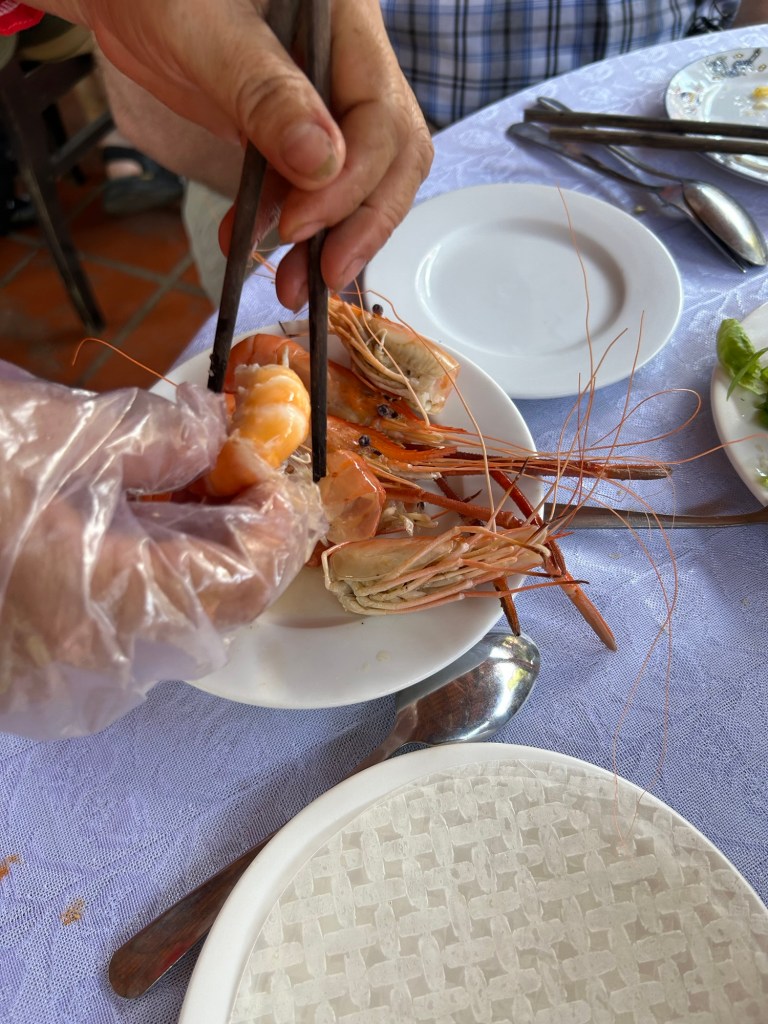 Our next stop was the river. Our tour took us to several villages where we had the opportunity to see the crafts and culture of those living in the Delta. The cruise was laid back and interesting. The villagers get around by canoes, either motor or hand powered. The eyes painted on the boats are protection from the river monsters and to see the way home. There are no eyes on the fishing boats so that they don’t scare the fish away.