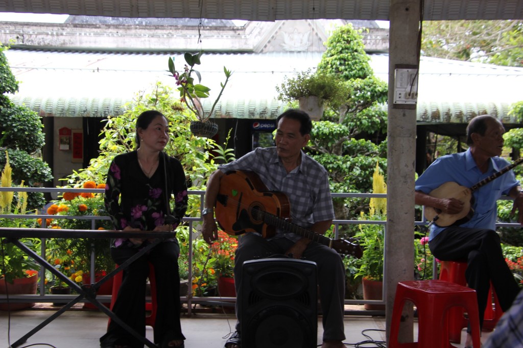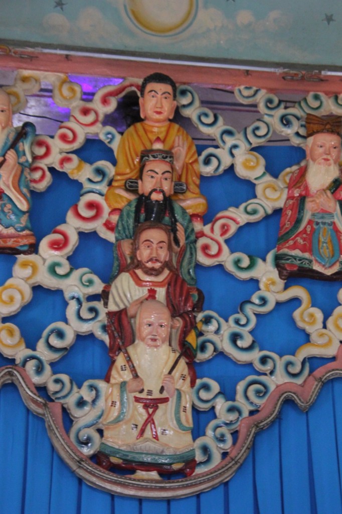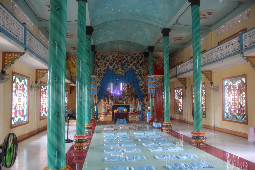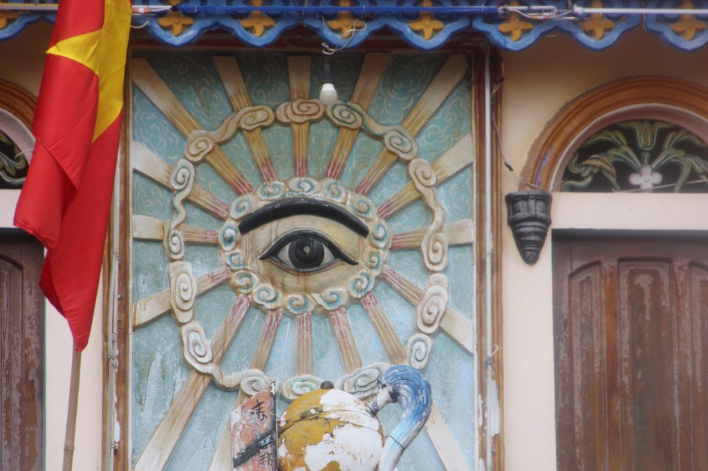 Our day was fairly laid back compared to the last week. We had breakfast, boarded the bus and headed for the Mekong Delta. We stopped at an interesting religious site called Cao Dai. This is a new religion developed in 1926 after the leader consulted with a Ouija board. Our guide explained that Caodaism is a merger of Confucianism, Buddhism, Taoism and Christianity. They believe in one god, that all religions come from the same source and that people can access spiritual connections through seances. Their main symbol is the left eye – a sign of god’s omnipresence, spiritual awareness and universal truth. This faith has become popular and has millions of followers around the world.