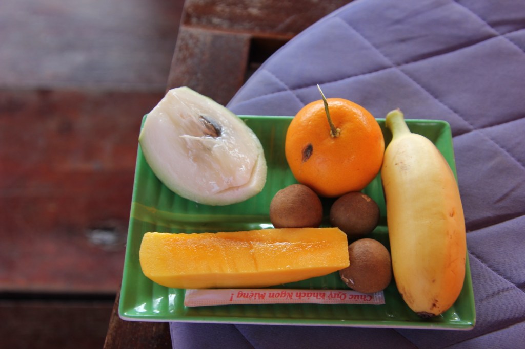 We were served at least 10 different fruits on the cruise, including coconut water (still in the coconut). Drinking coconut water is the natural and Local way of getting electrolytes into your system. Given the heat, this was welcome.